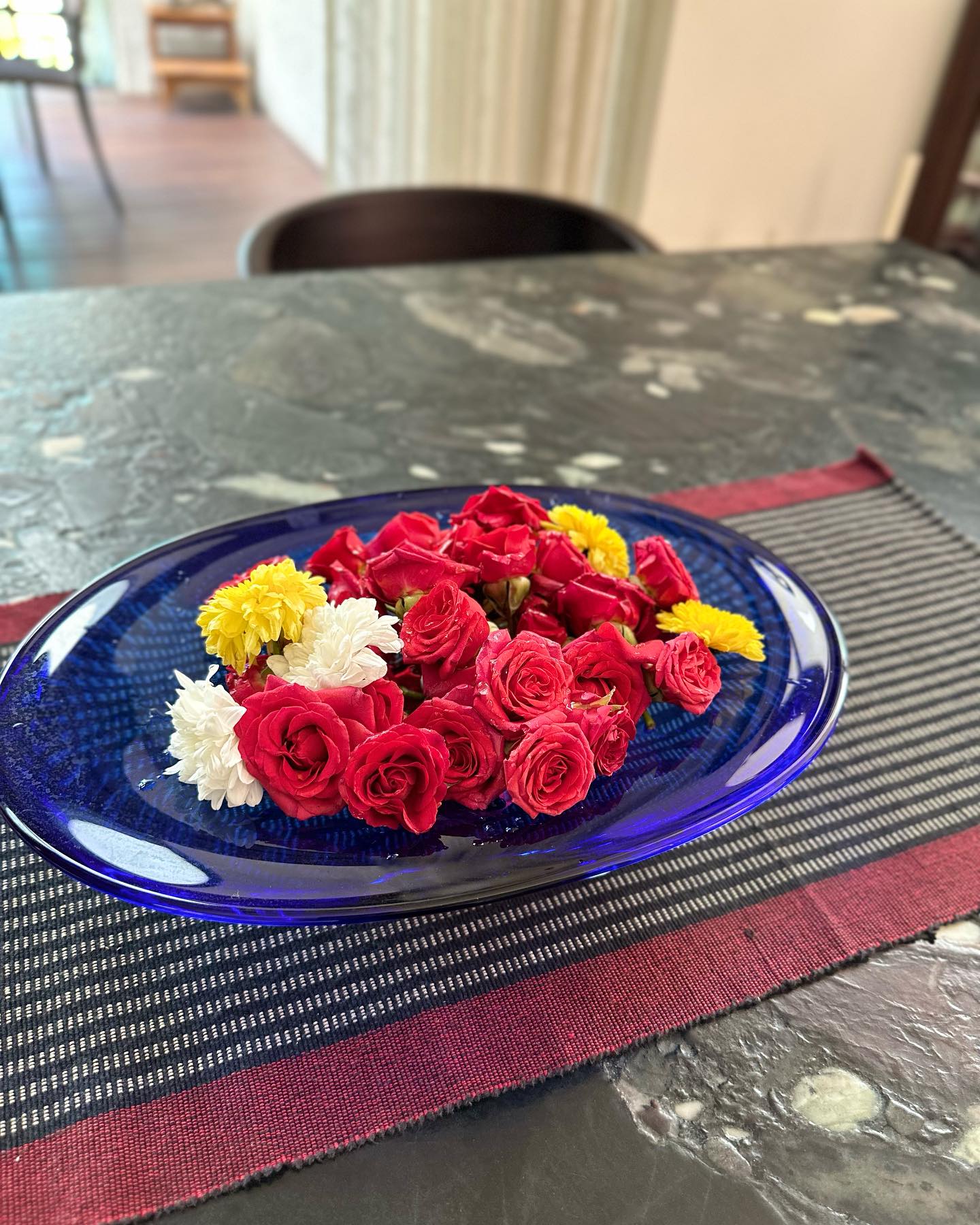 ◉土曜日の来客。花を買い忘れていたので、BigBasket.com(スーパーマーケット)で食材を注文する際に、プージャー(宗教儀礼)のための花を買う。インドの街角では、日常的に、神に捧げる花が売られている。オンラインでも。それらを、ガラスの器に「盛り付ける」とかわいい。