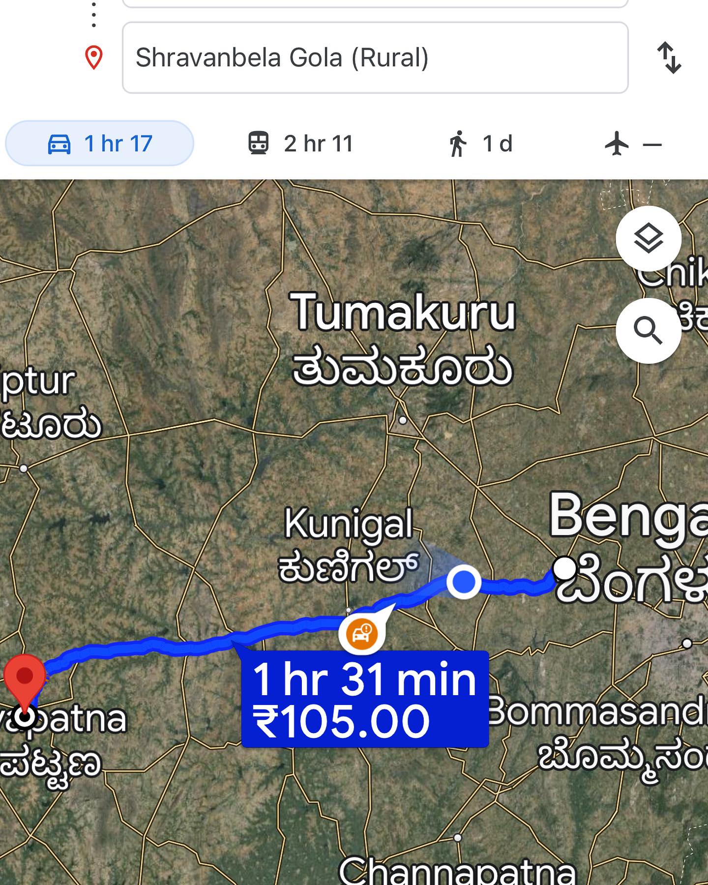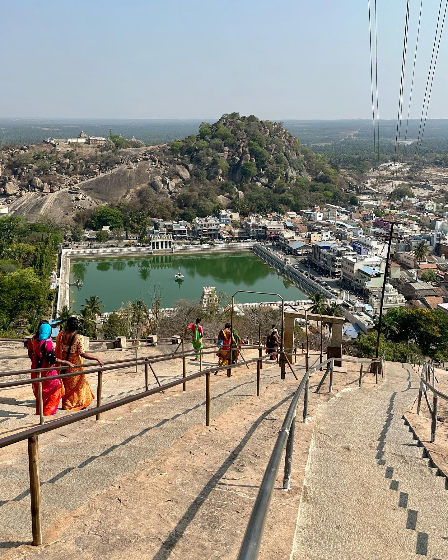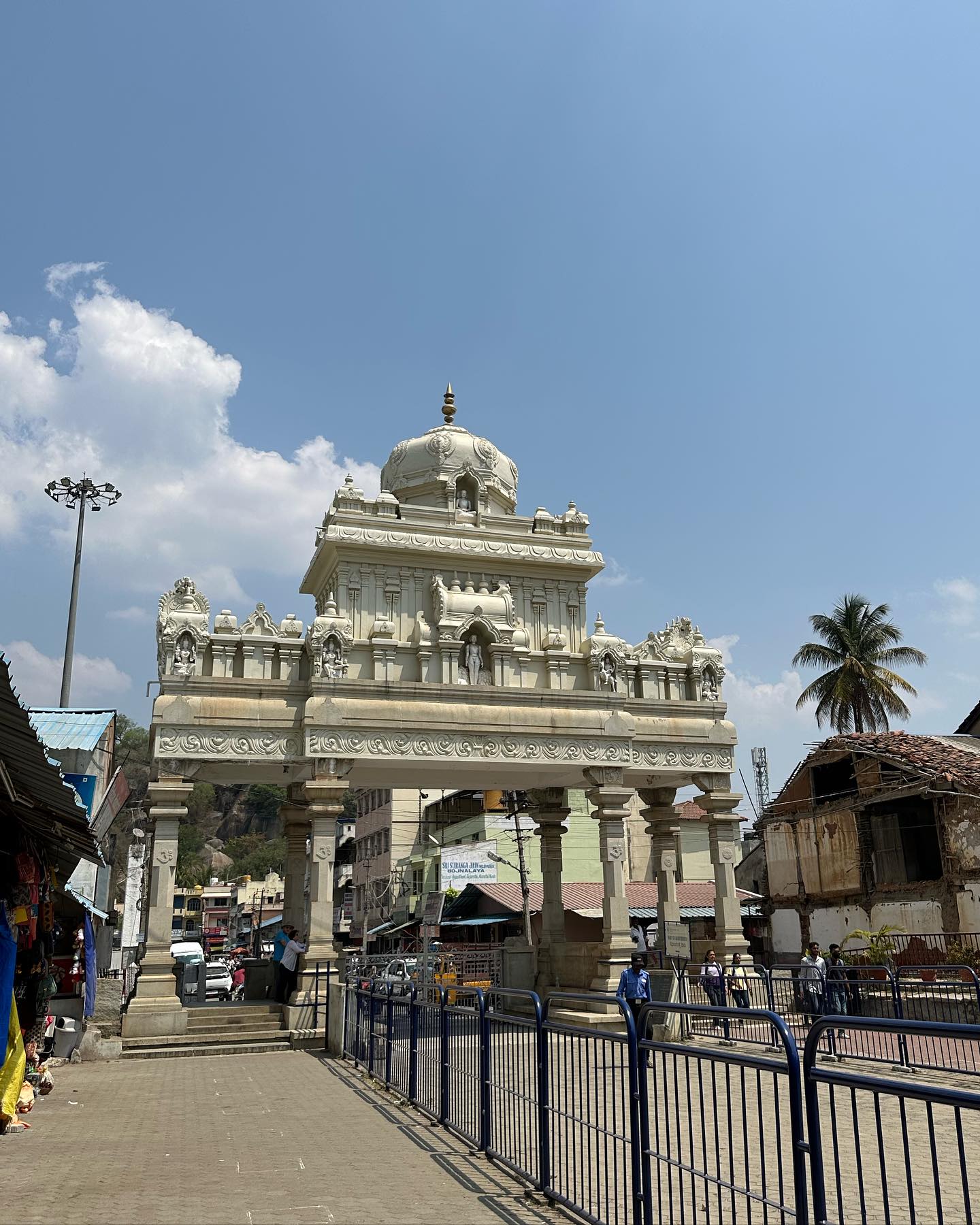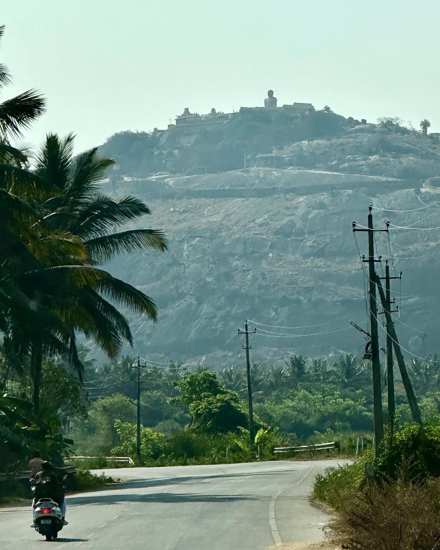 そんな中、昨日はわたしは友人たちとは別行動で、早朝6時過ぎに家を出た。サクレシュプールへ向かう途中、バンガロール近郊の旅先としてよく知られるシュラヴァナベラゴダ(Shravanabelagola ಶ್ರವಣಬೆಳಗೊಳ)に立ち寄ることにしたのだ。バンガロール中心部から西へ約144km。わずか3時間足らずでたどり着くジャイナ教の聖地だ。