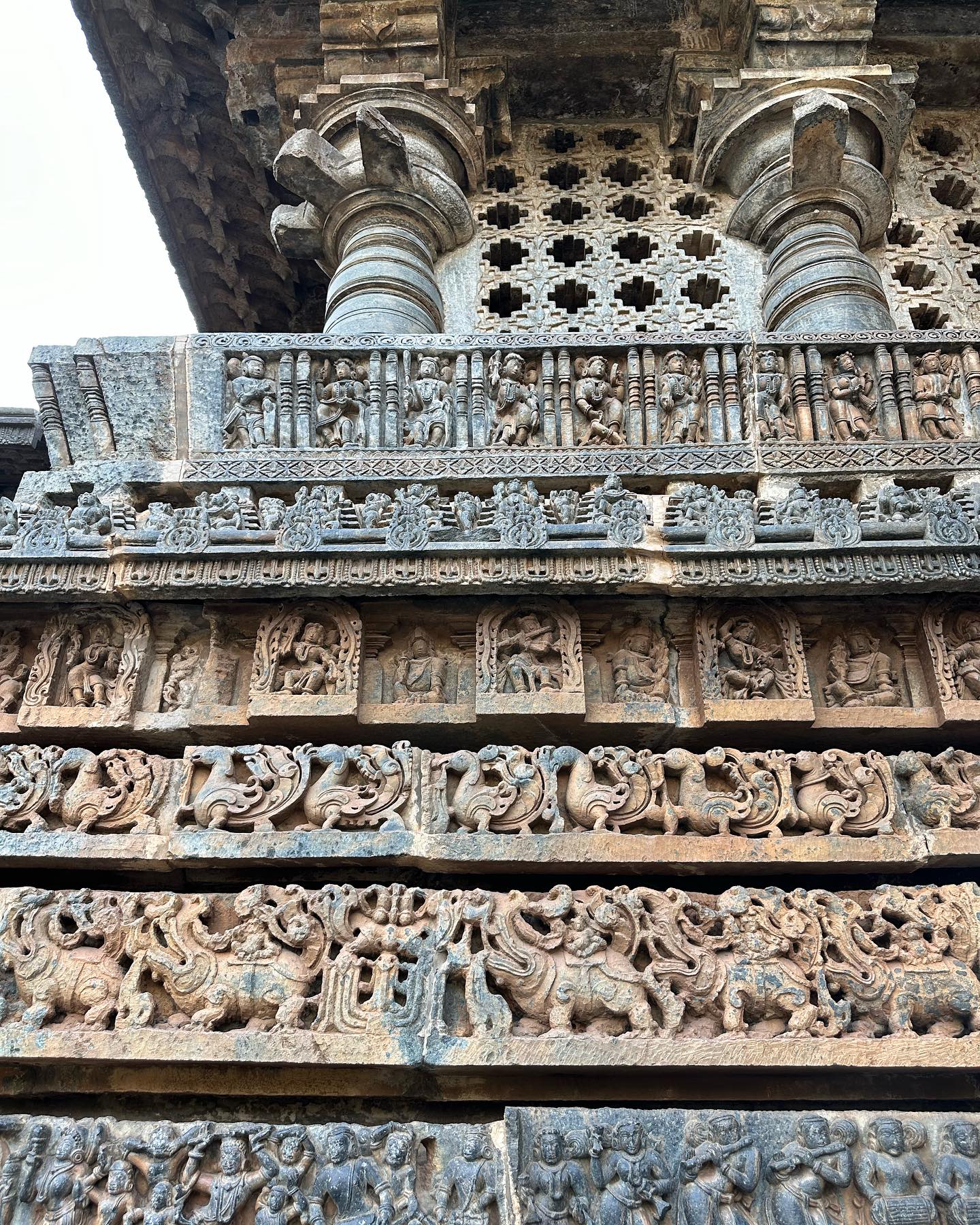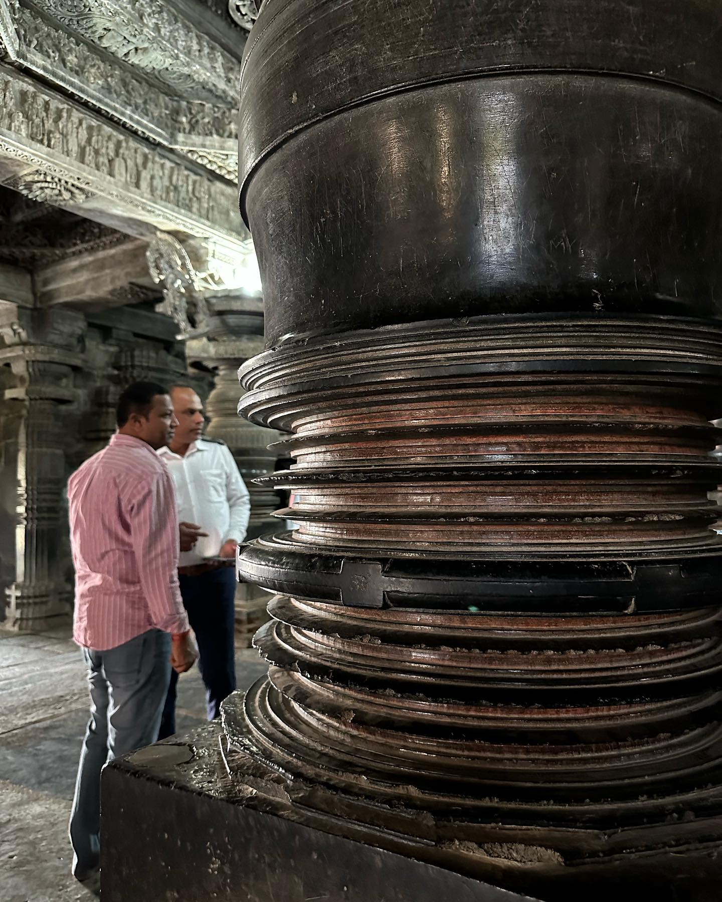 まずは、リゾートから遠距離にあるハレビドゥ (Halebidu)という町にあるホイサレシューヴァラ寺院 (Hoysaleshwara Temple)へ。ハレビドゥ は、かつてホイサラ帝国の首都であった。寺院の建造は、ヴィシュヌヴァルダナ王によって1121年ごろに着工され、約40年後の1160年に完成したという。
