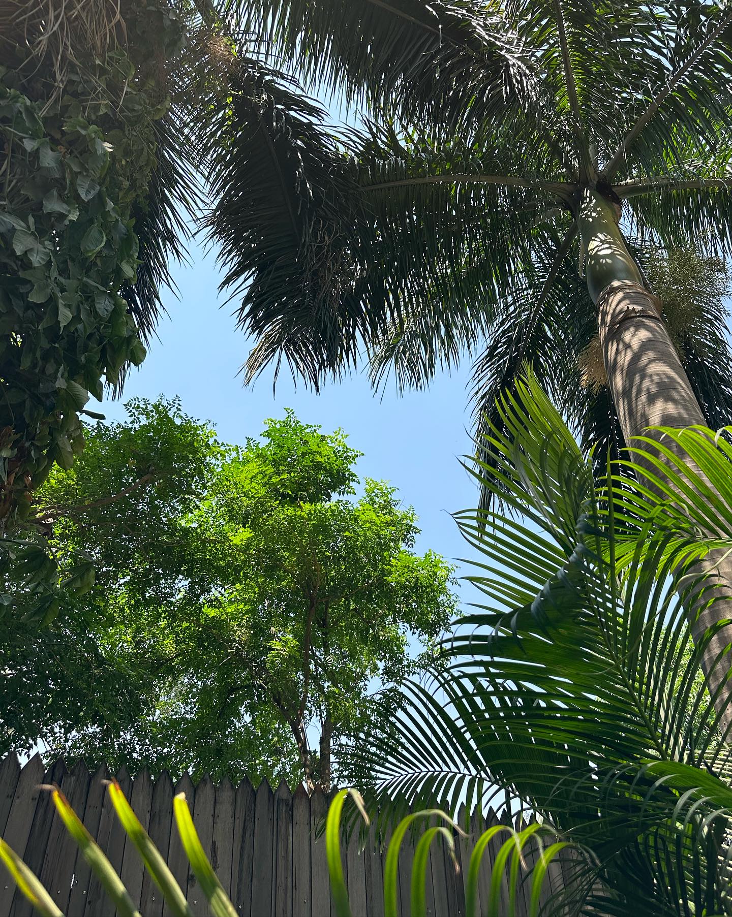週末を終えて旧居に戻れば、片付けねばならない「現実」が迫り来る。中途半端に頓挫している書斎の片付け。ミューズ・クリエイションの工芸品作りの材料が収められたままのクローゼット。捨てられずに残っている古い家電……。日頃から片付けているつもりでも、気づけばモノは蓄積する。旧居へ移ったのは2007年4月。わたしの背丈ほどだった椰子の木は、天を刺すほどに成長した。17年間の歳月の流れたのだ。それも、あっという間に。途方に暮れる思いを抱えつつ……抱えるなかれ、リラックス、リラックス、Thake it easyと、自分をなだめる。