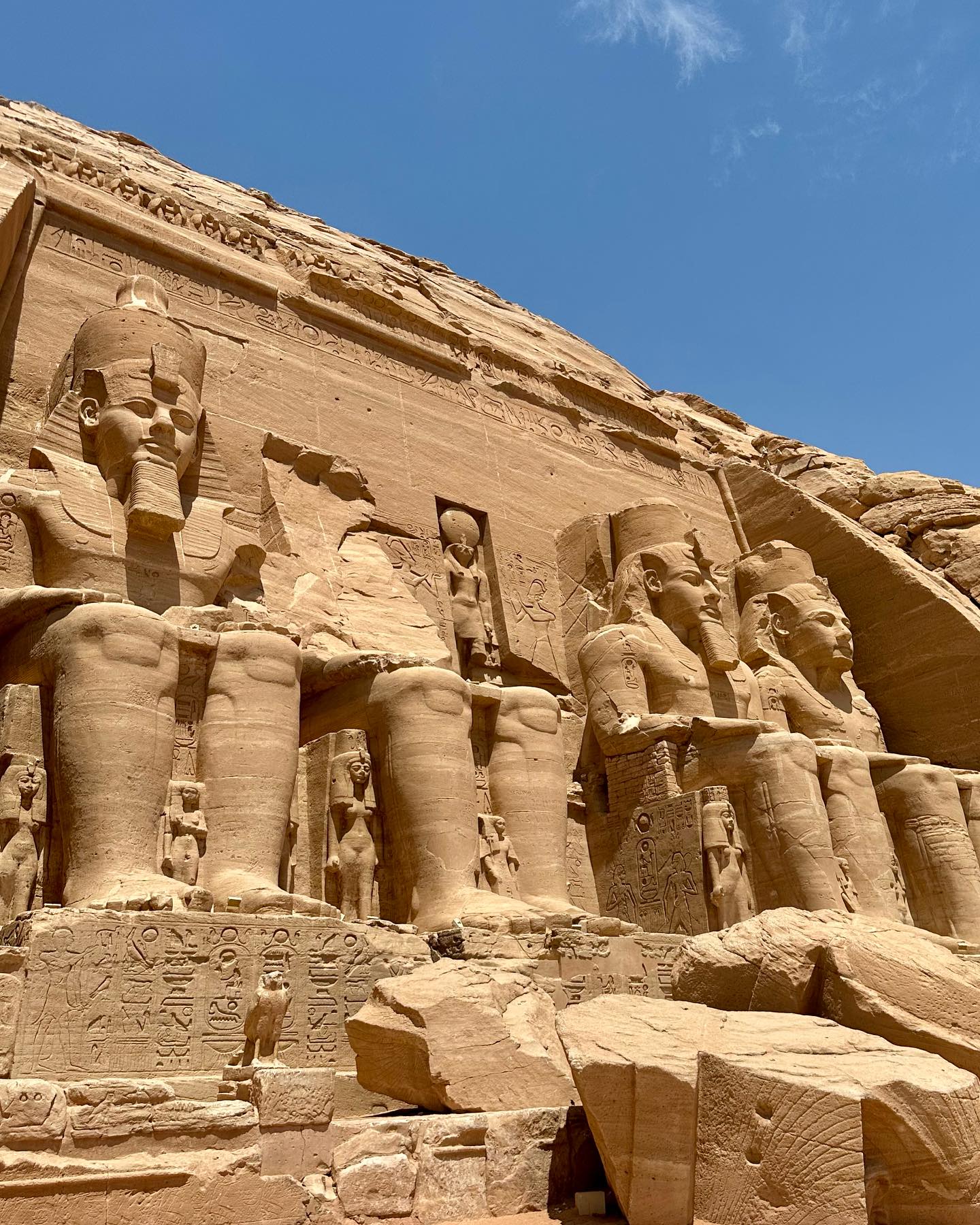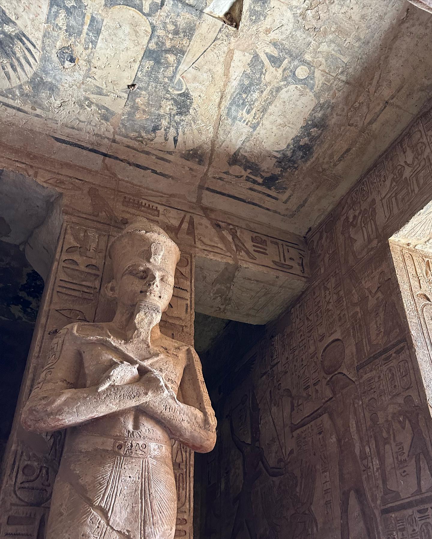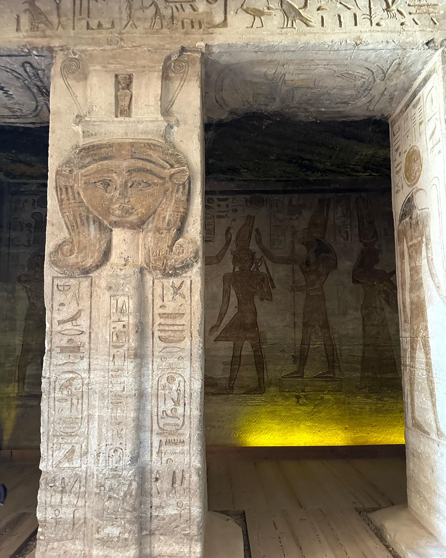 この石窟神殿の北側に、もう一つ小さめの石窟神殿がある。これは、ハトホル女神と、ラメセス2世の妻であるネフェルトイリ王妃に捧げられたものだという。後半の写真がそれだ。
