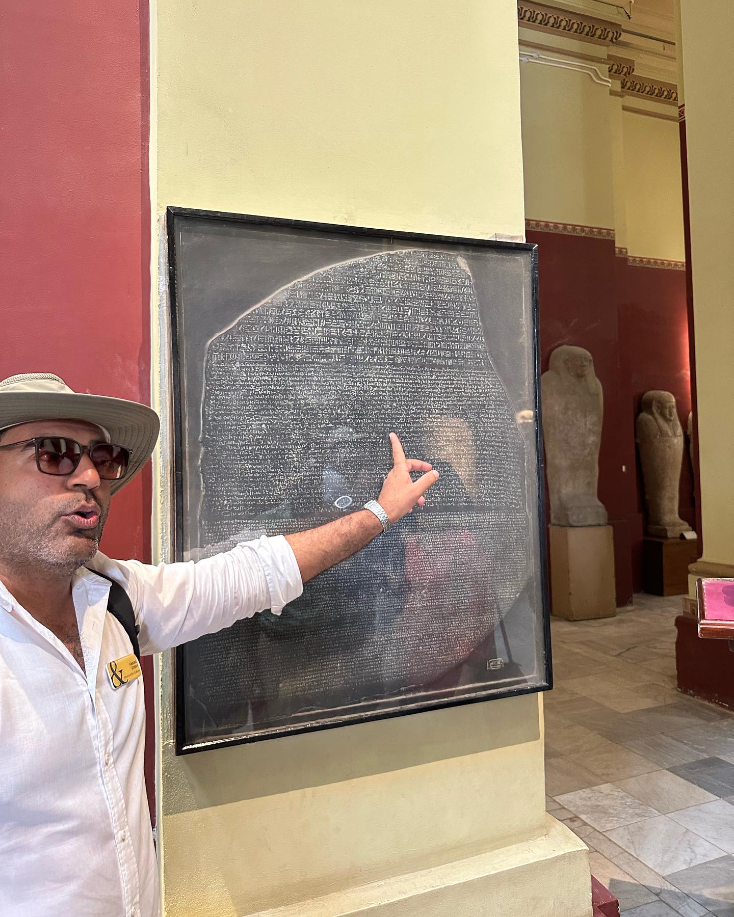 3枚目の写真は、ロゼッタストーンの「コピー」を指差しているガイド氏。オリジナルは英国の大英博物館の玄関口に所蔵されている。2018年に大英博物館を訪れた時には、よくもまあこれだけのものを盗掘したものだと驚き、呆れたものだ。