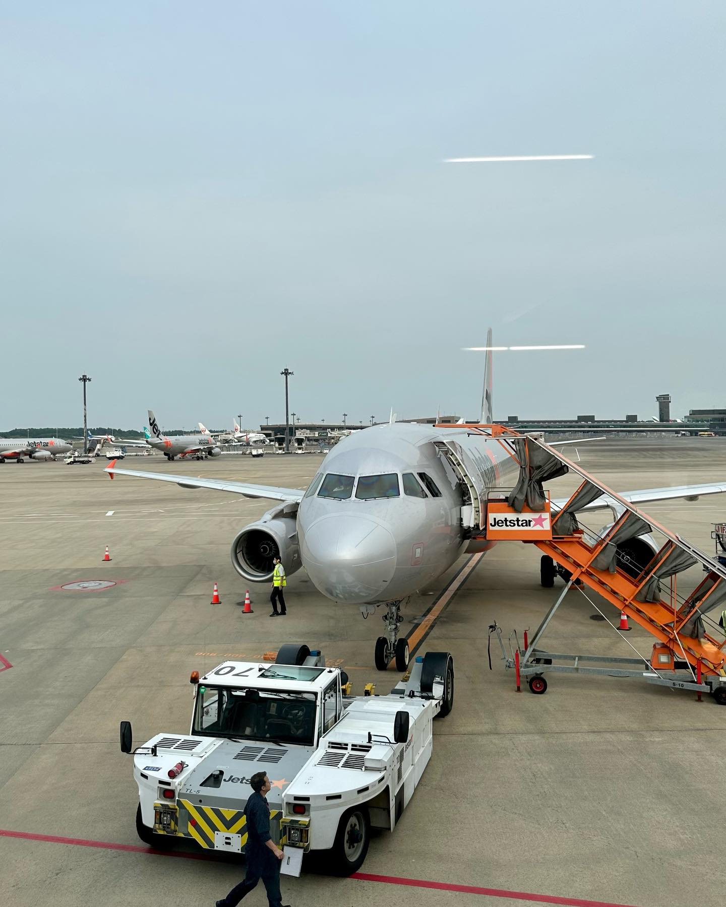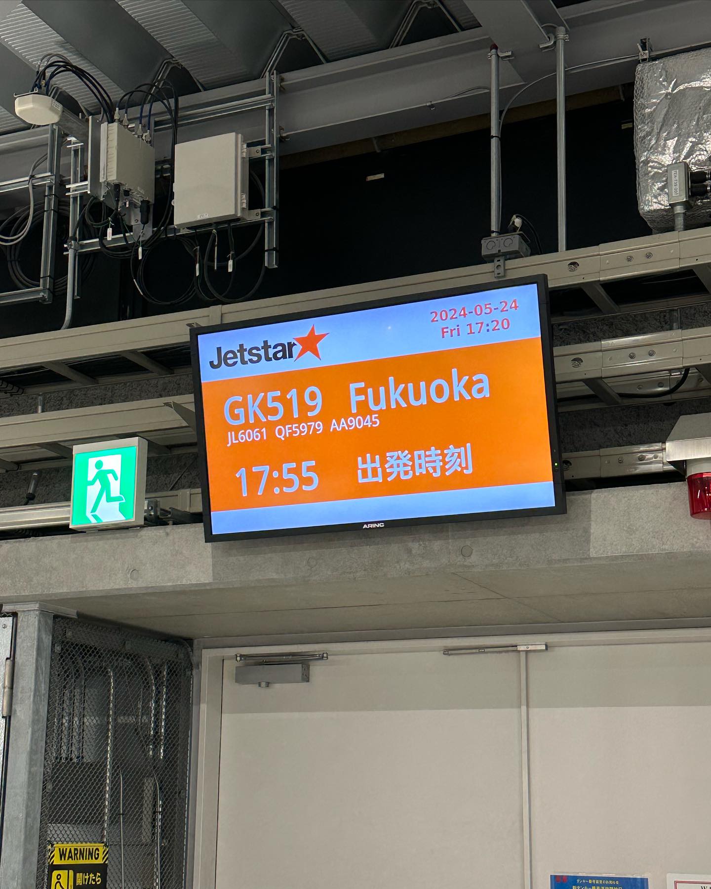 福岡行きのフライト遅延のアナウンス。長い旅路。