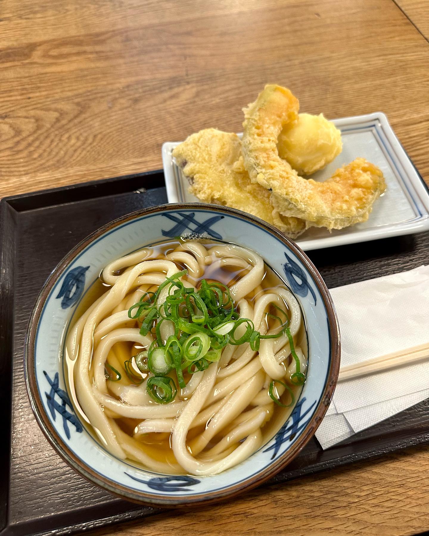 突貫工事の感あるターミナル3で、讃岐うどん。トッピングの選び方が、ちょっとおかしい。