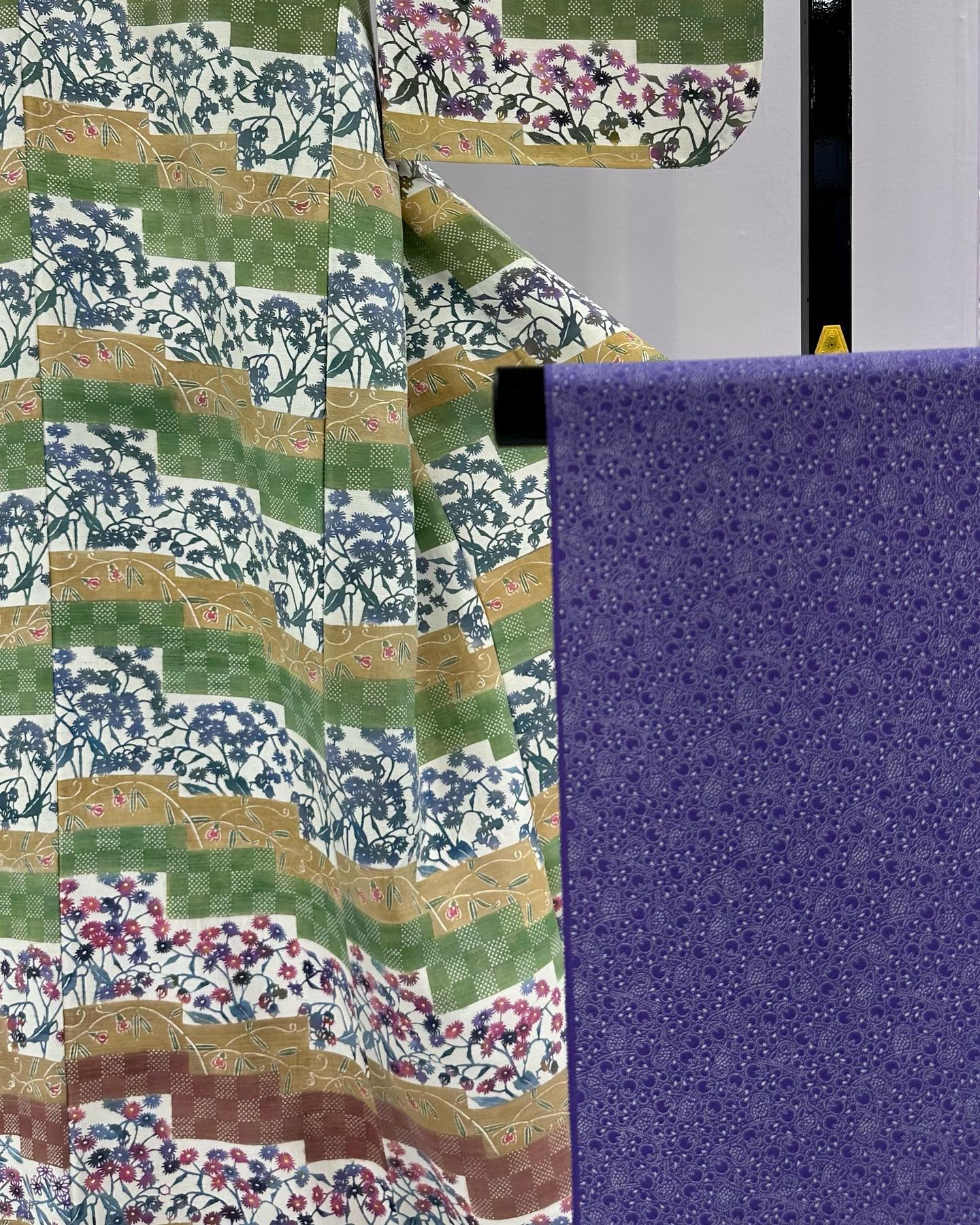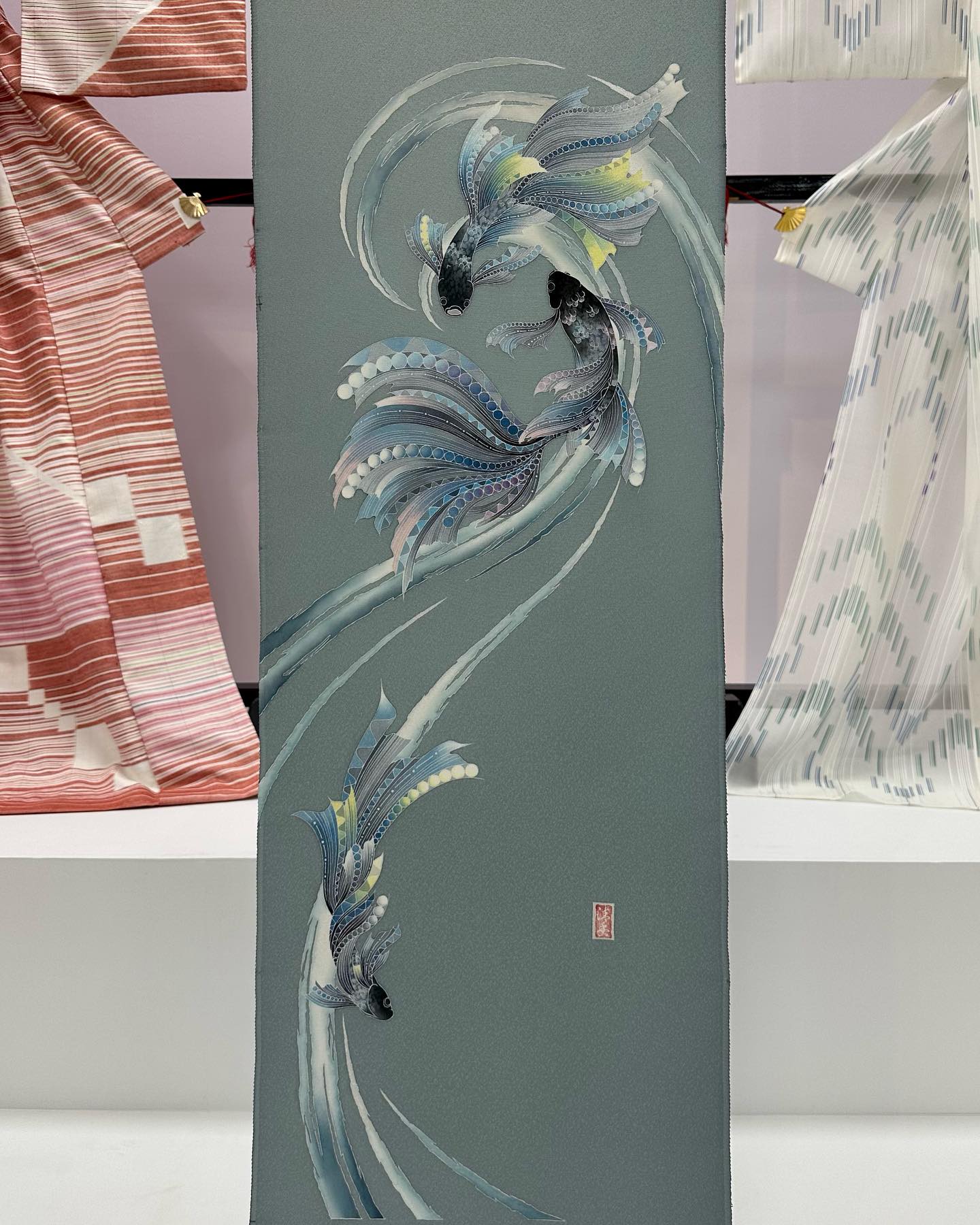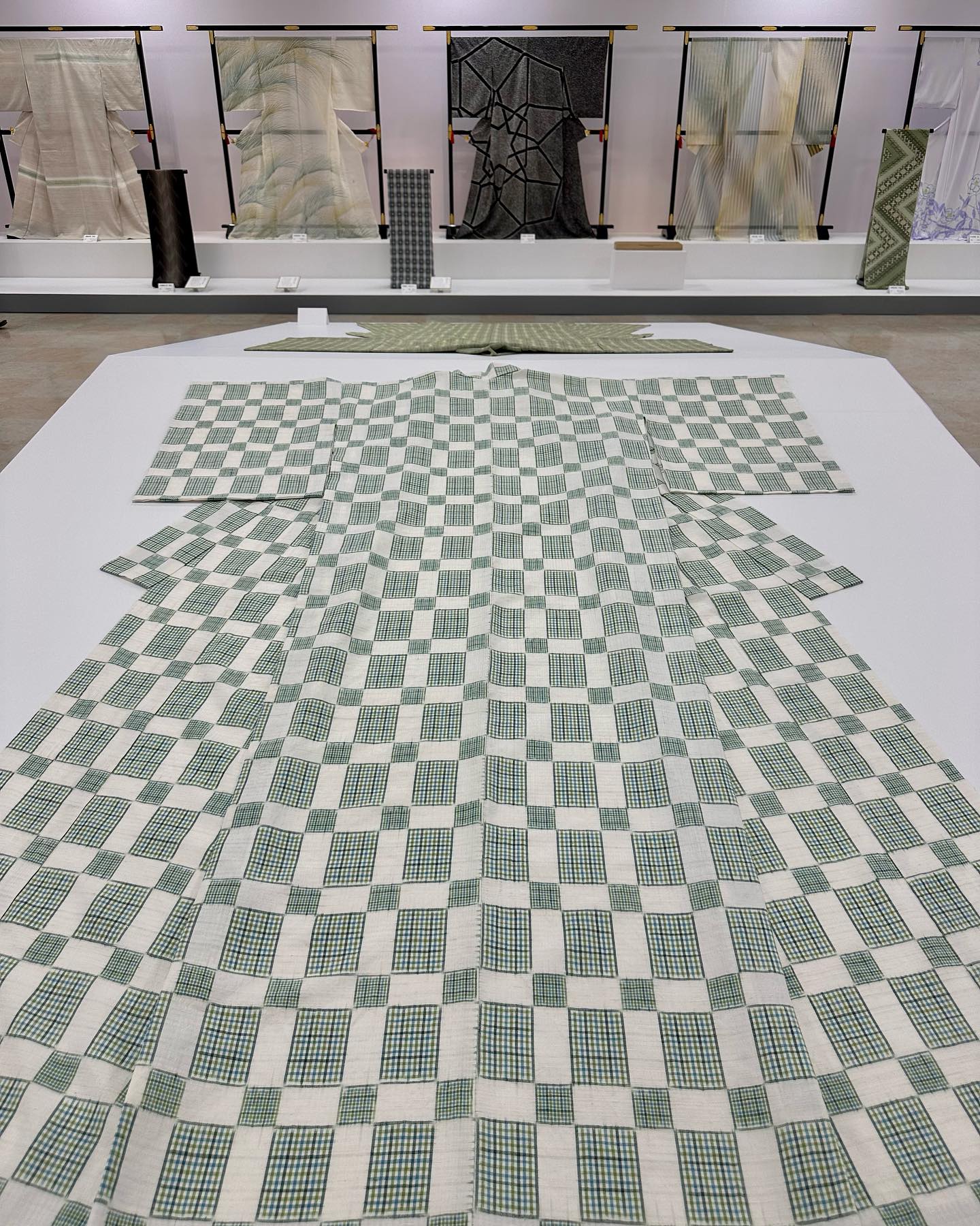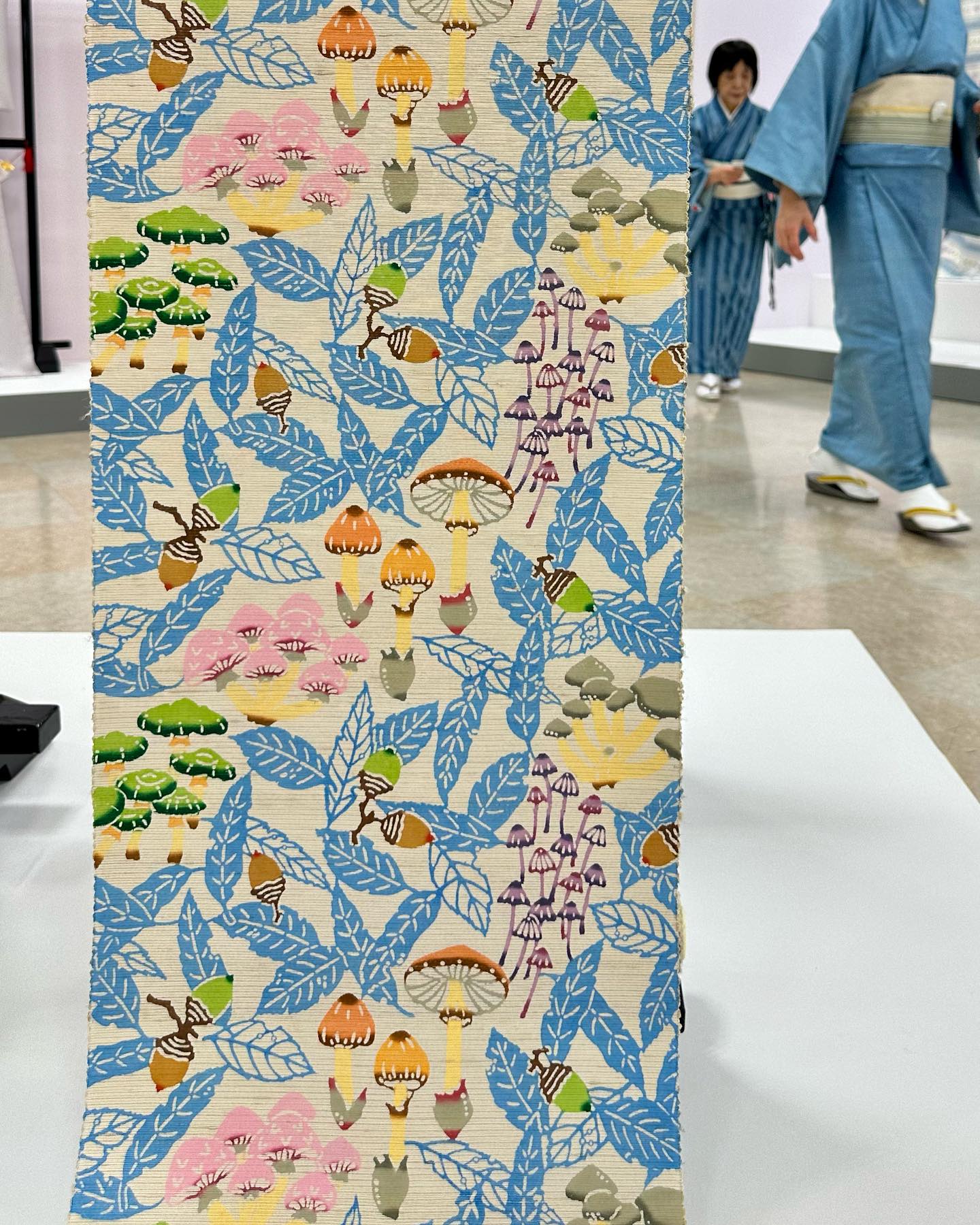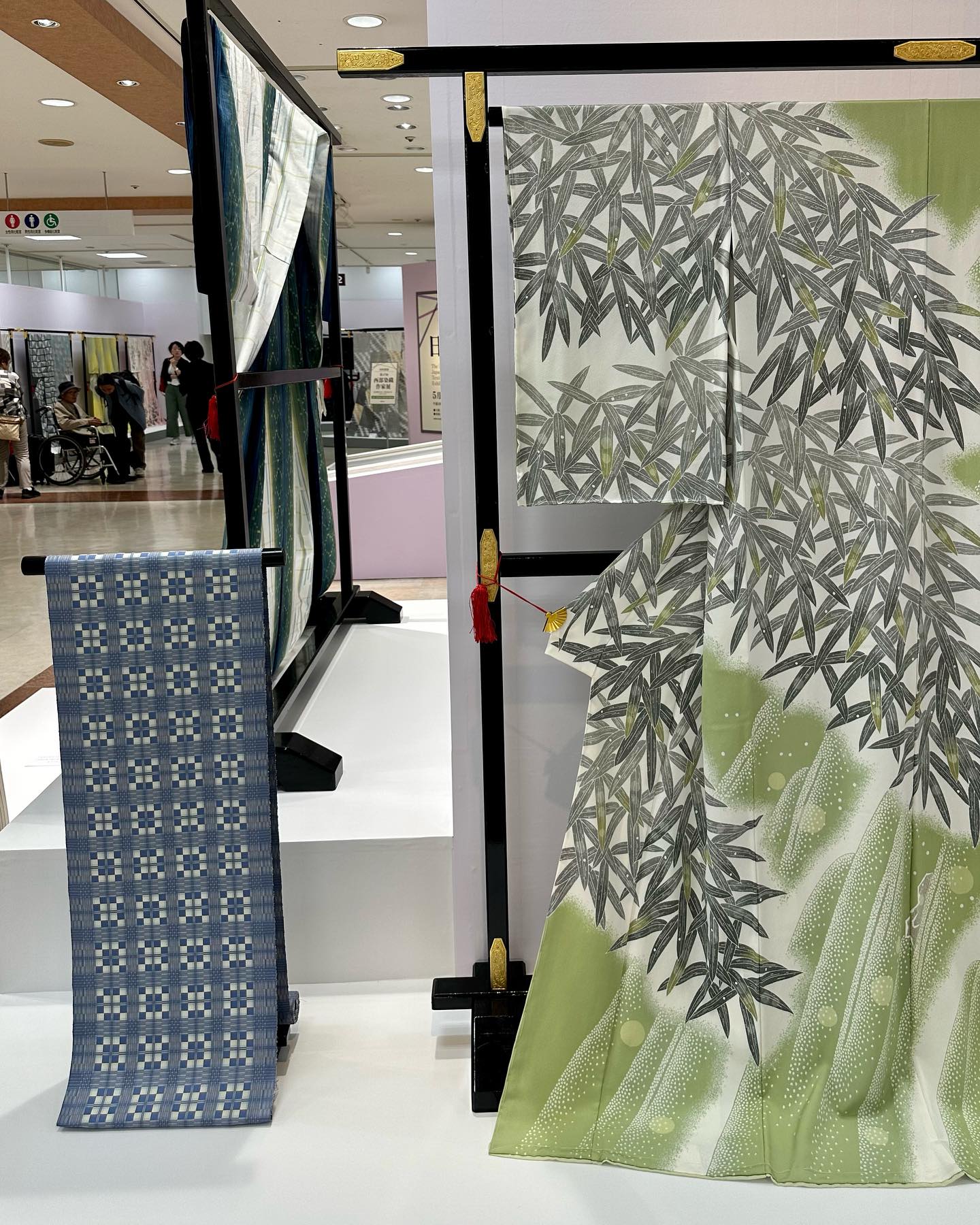 写真は、最上階の催し場で開催されていた「日本伝統工芸染織展」の様子。久留米絣や友禅、絞りなどの芸術作品が並び、本当に、すばらしい。