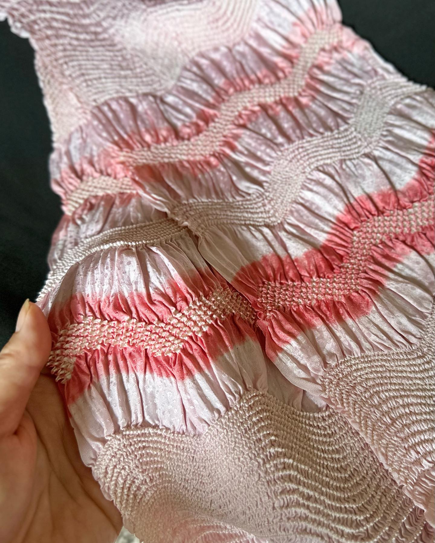 インドの友人らからのリクエストに応えての羽織。そして、上品な色合いの帯2本。この帯の手法をなんというのか、調べがつかない。ご存知の方がいらしたら、教えてください。