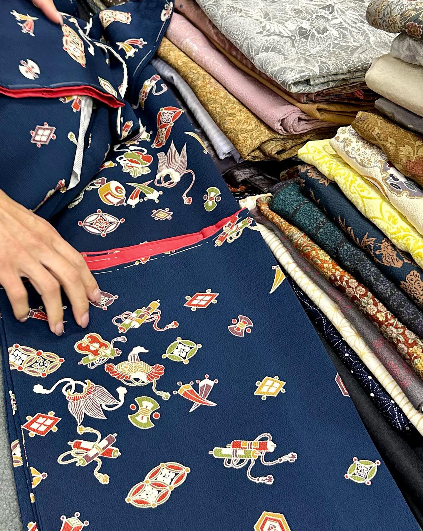 スタッフの女性の方のサポートを得て、いろいろと教わる。着物世界の常識を、わたしは今、学びはじめたばかりだから、恥も外部も捨てて、お尋ねするしかない。着物用語を少しずつ耳にすることでなじんでいき、自分の言葉になる。その過程もまた、楽しい。