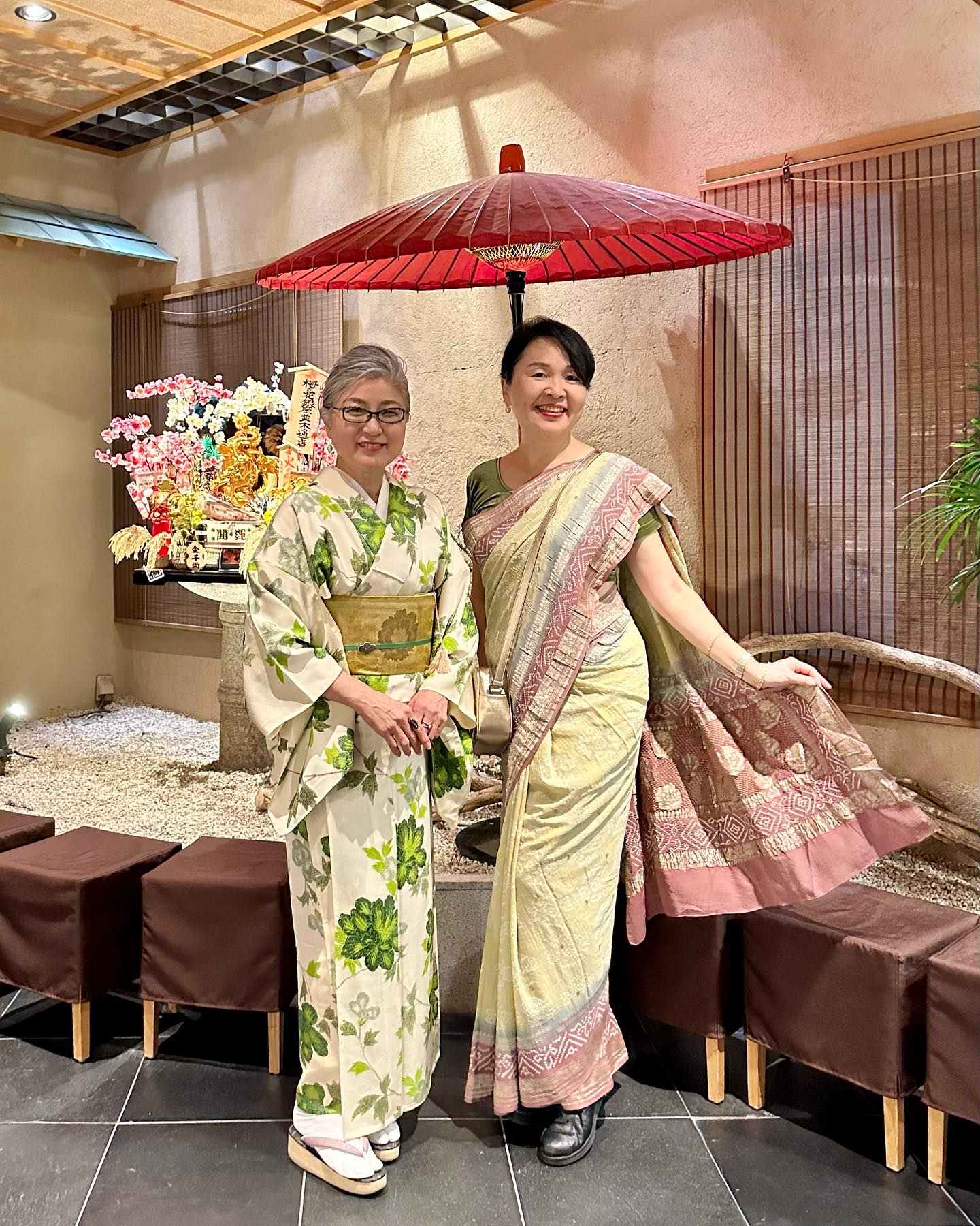 そのとき、着物をモダンに美しくお召しになった女性に声をかけられた。それが、京子さんだった。着物関係のお仕事もされている京子さんは、「壱の蔵」のお手伝いもされていて、その日、サリー姿のわたしに関心を持ち、お声をかけてくださったのだった。その場では軽くご挨拶と簡単な立ち話をしただけだったが、その後、ソーシャルメディアを通してご活動や、着物の着こなしの美しさなどを拝見していた。
