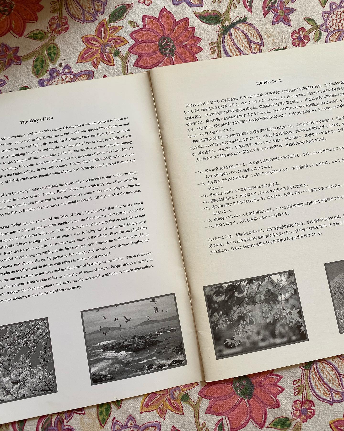 わたしにとって、英語で茶道を紹介するときのバイブルは、この黄色い冊子だ。