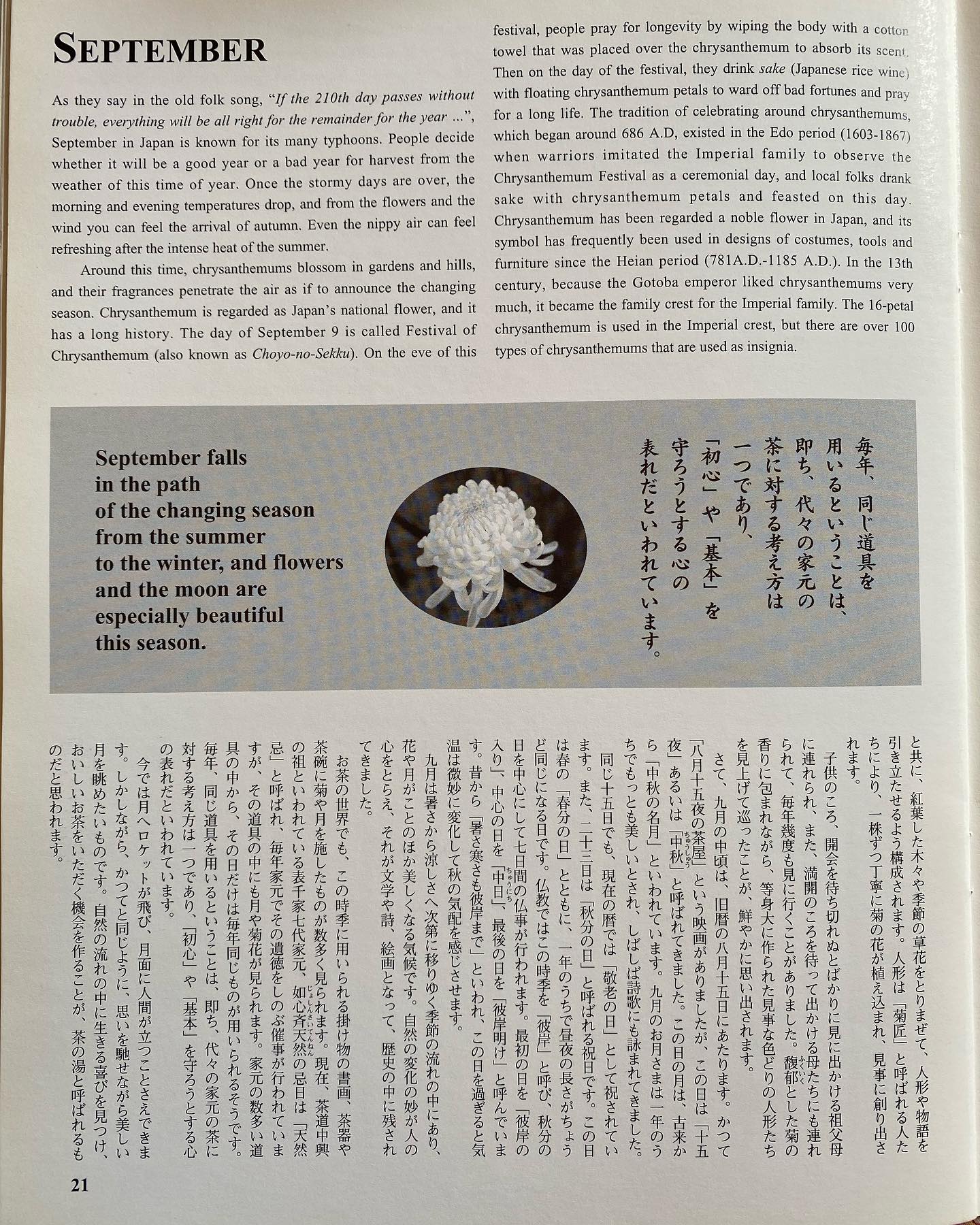 今、読み返して、その文章と表現の美しさに感嘆する。日本を離れたばかりの、33歳のわたしには、漠然としたイメージでしかなかった茶の湯の世界、侘び寂び、四季を慈しむ心、人をもてなす流儀……。