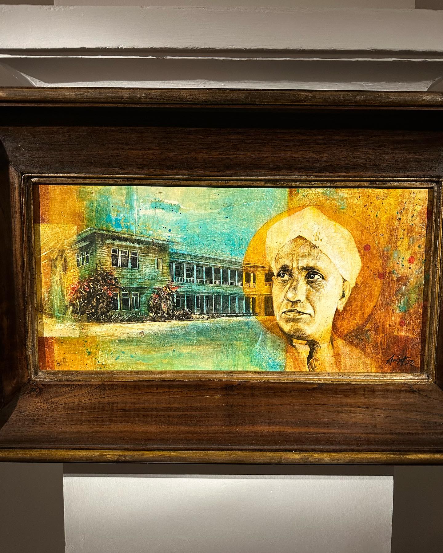 1970年にCV Ramanが他界したあとも、ほとんど手をつけられぬままに半世紀以上、静かに守られてきたであろう邸宅。その時を遡る空間に、静かな呼吸を与えているのが、コルカタ出身の画家、Avijit Duttaの作品だ。彼はVivekに依頼され、昨年発売されたRaman研究所の75周年記念切手のデザインを手がけた。今回の展示会は、その延長線上にあるという。