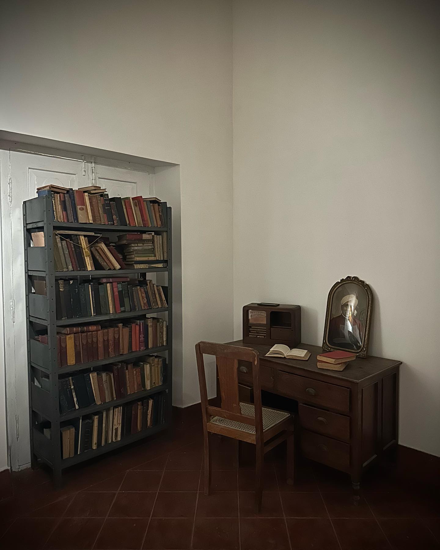 壁を覆うどころか、むしろ、ぽつん、ぽつんと、空間の静寂をを引き立てるように配された絵画。その存在感と光の具合。音楽が好きだったというCV Ramanを偲ばせる、ピアノやシタール、そして机や書棚が、見事に調和している。