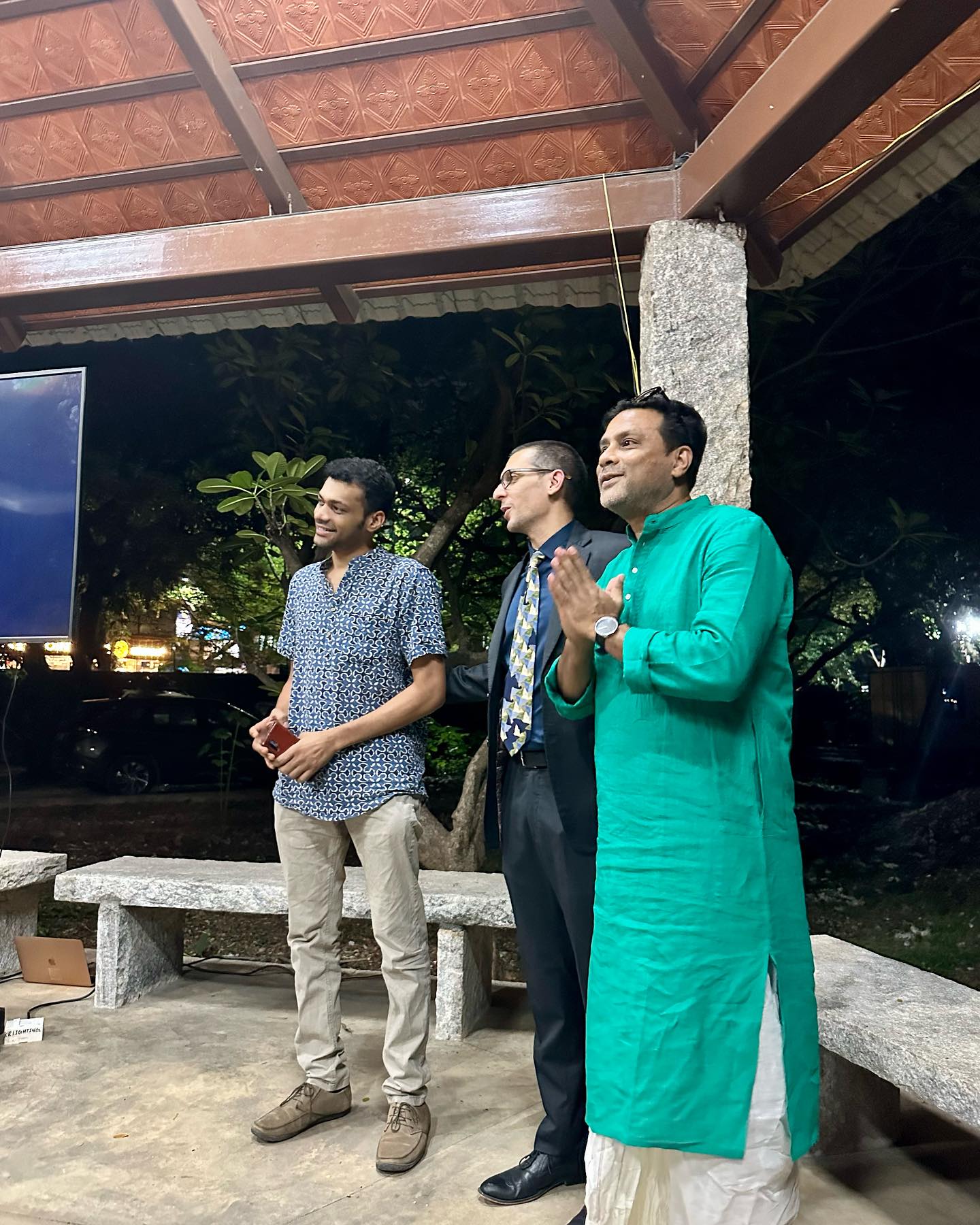 展示会では「My city, my mother」という短編映画が上映された。これがまた、本当によかった。心に迫る。3人の男性(写真)による共同作品。手前から、Avijit、Vivek、そして映画監督のManush Johnの作品。以下のリンクから見られる。