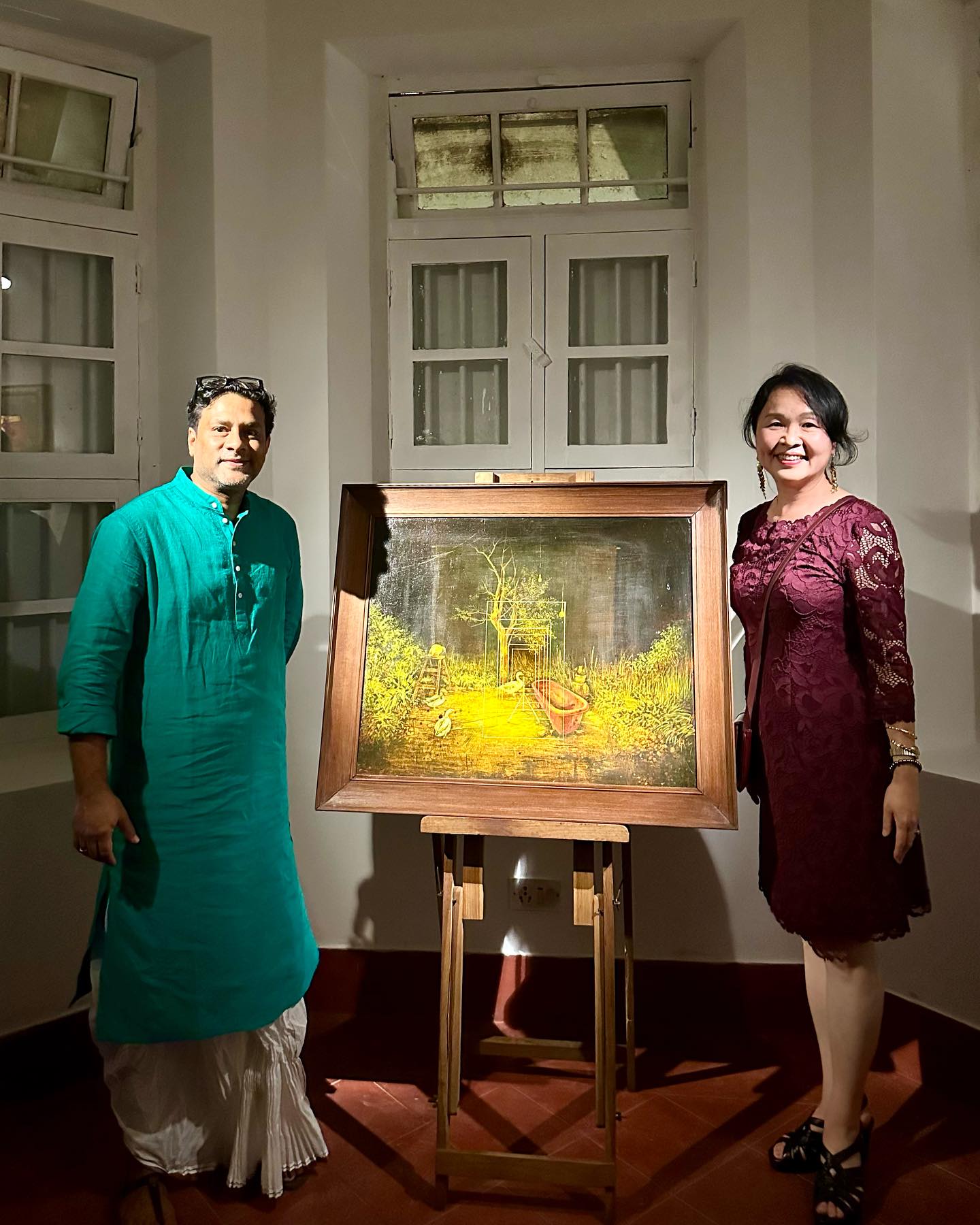 *絵画に調和し相乗する、ヴィンテージなフレーミングも、Avijitの作品。