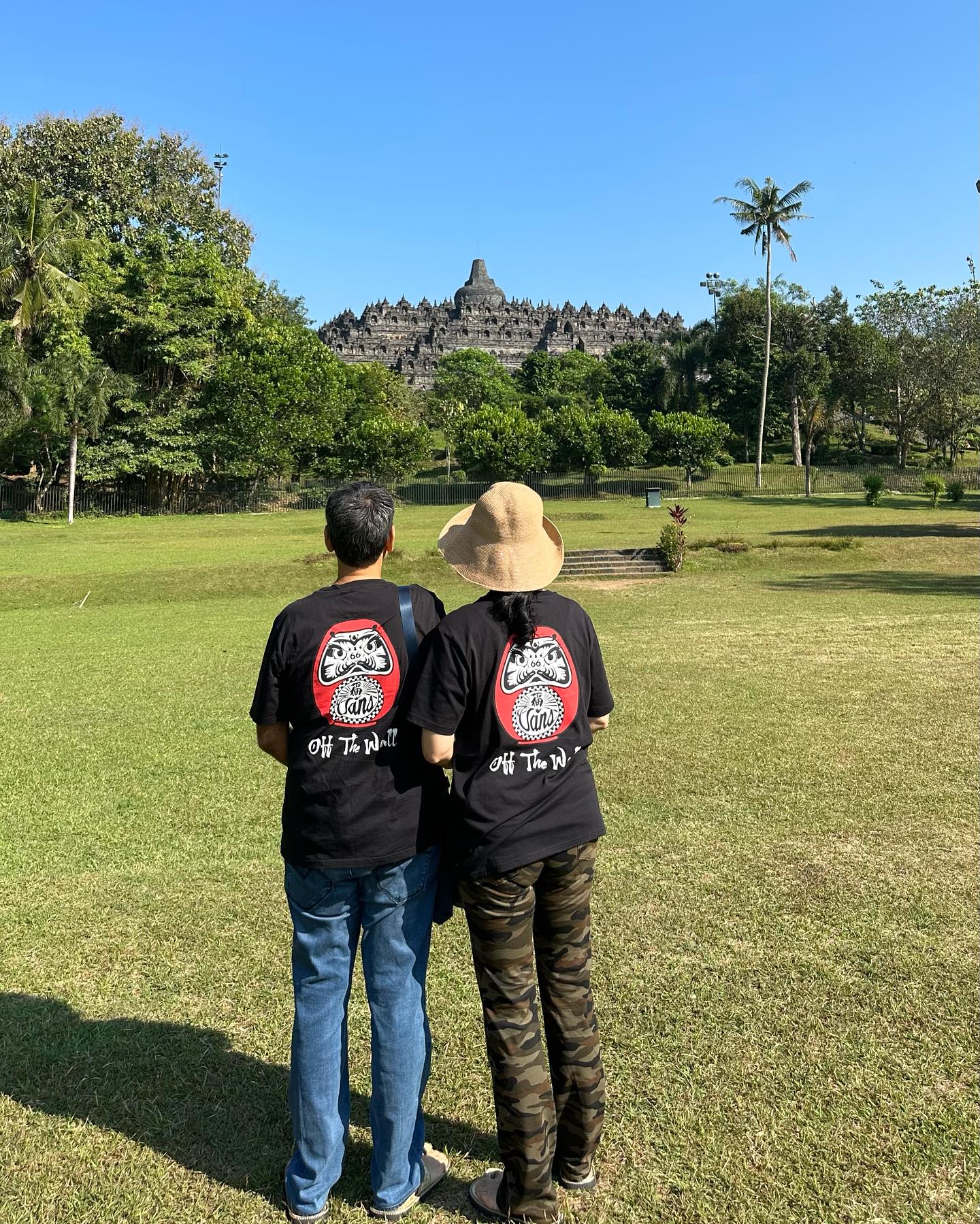 ところでこの日の我々は、結婚記念日ホリデーにふさわしく、おそろいのTシャツを着用。基本的に夫の服選びはわたしが9割方、担当している。Tシャツに関しては、日本土産のふざけたものが多数。このTシャツは、成田国際空港で購入した「ダルマ」柄。達磨の起源は、南インド。お隣タミル・ナドゥ州なのだ。……と書き始めると長くなる。