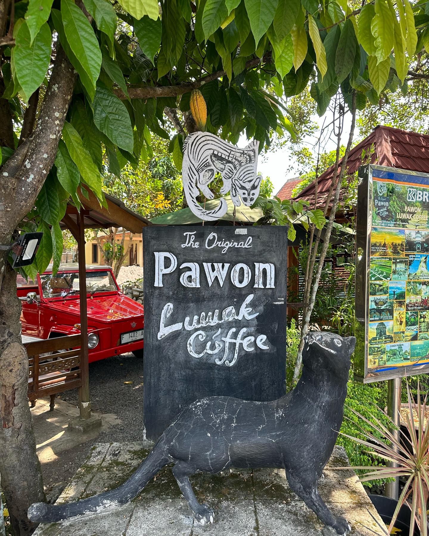 ホテルへ戻る道すがら、ここボロブドゥール名物の「ルアック・コーヒー」の店へ。インドネシア語でコピ・ルアク(Kopi Luwak)と呼ばれるこのコーヒーは、稀少な豆だということで「最高級コーヒー」と位置付けられているらしい。実は以前、友人からお土産でいただいたことがある。