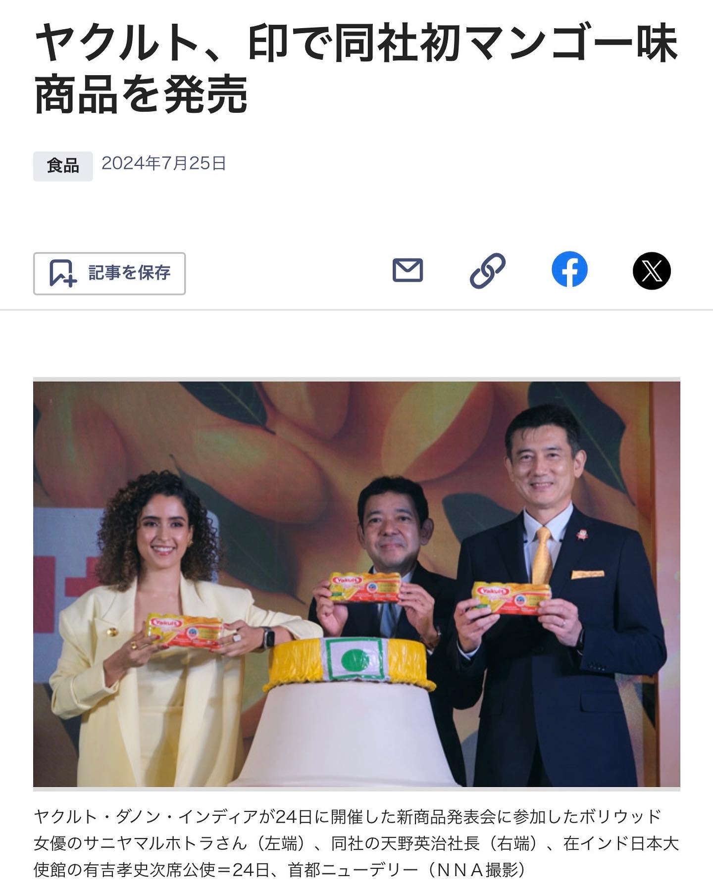 🥭ヤクルト、印で同社初マンゴー味商品を発売(NNA ASIA 2024年7月25日)