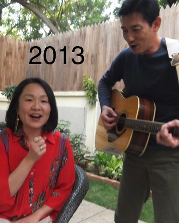 2013年の写真は、我が家でおせち料理を作り、お正月を過ごした時の一枚。二人で、さだまさしの歌を熱唱しているの図。