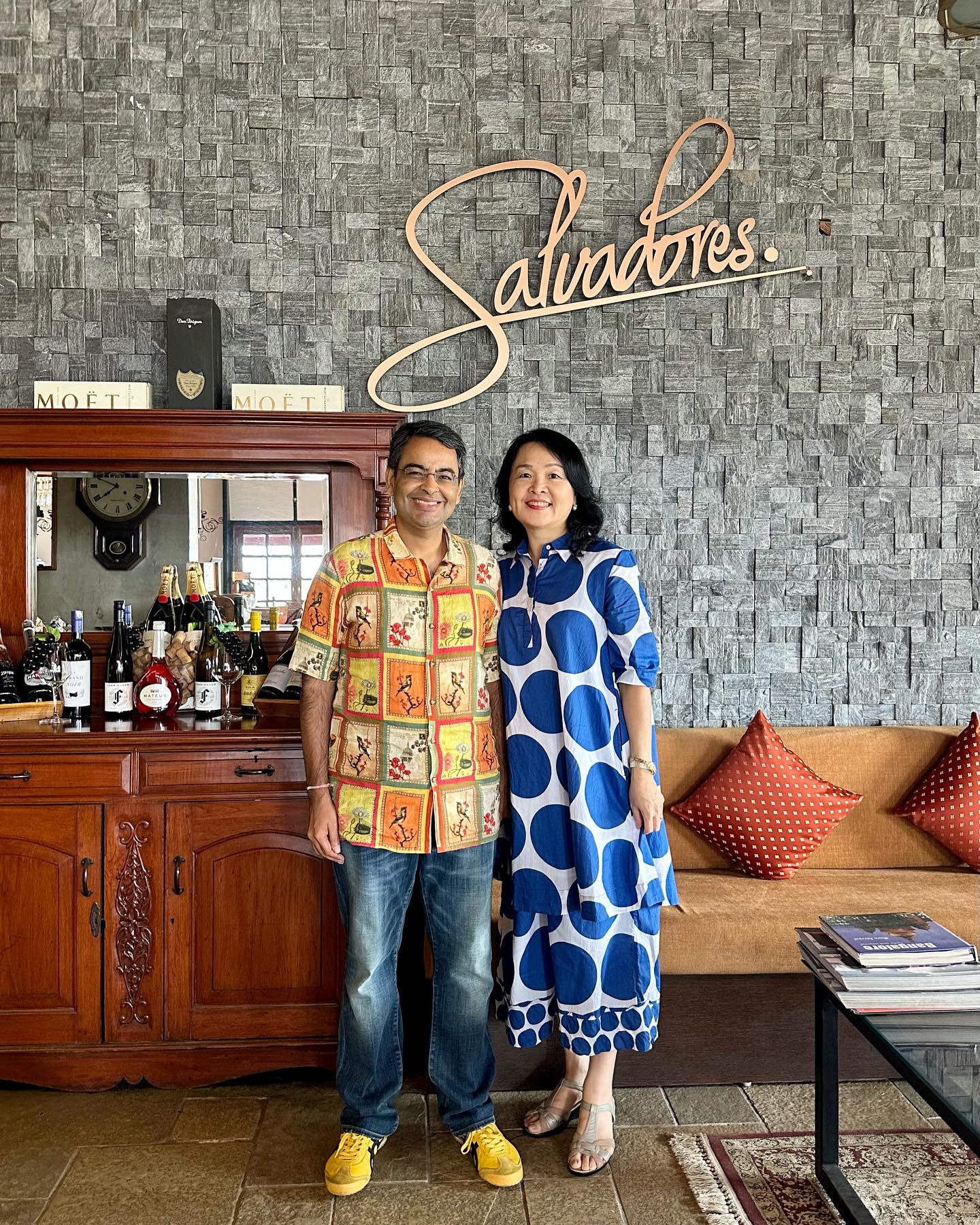 “Salvadores”の開業に際しては、二代目ジョセフ・サルヴァドール・ヴィクトリアの息子、三代目レックス・ヴィクトリアが携わったという。スリランカにおけるワイン貿易の第一人者であり、ホスピタリティ・ビジネスへの献身で知られた父、サルヴァドール・ヴィクトリアに捧げるべく、Salvadoresという店名だ。レストランの入り口には、彼の肖像画が掲げられている。