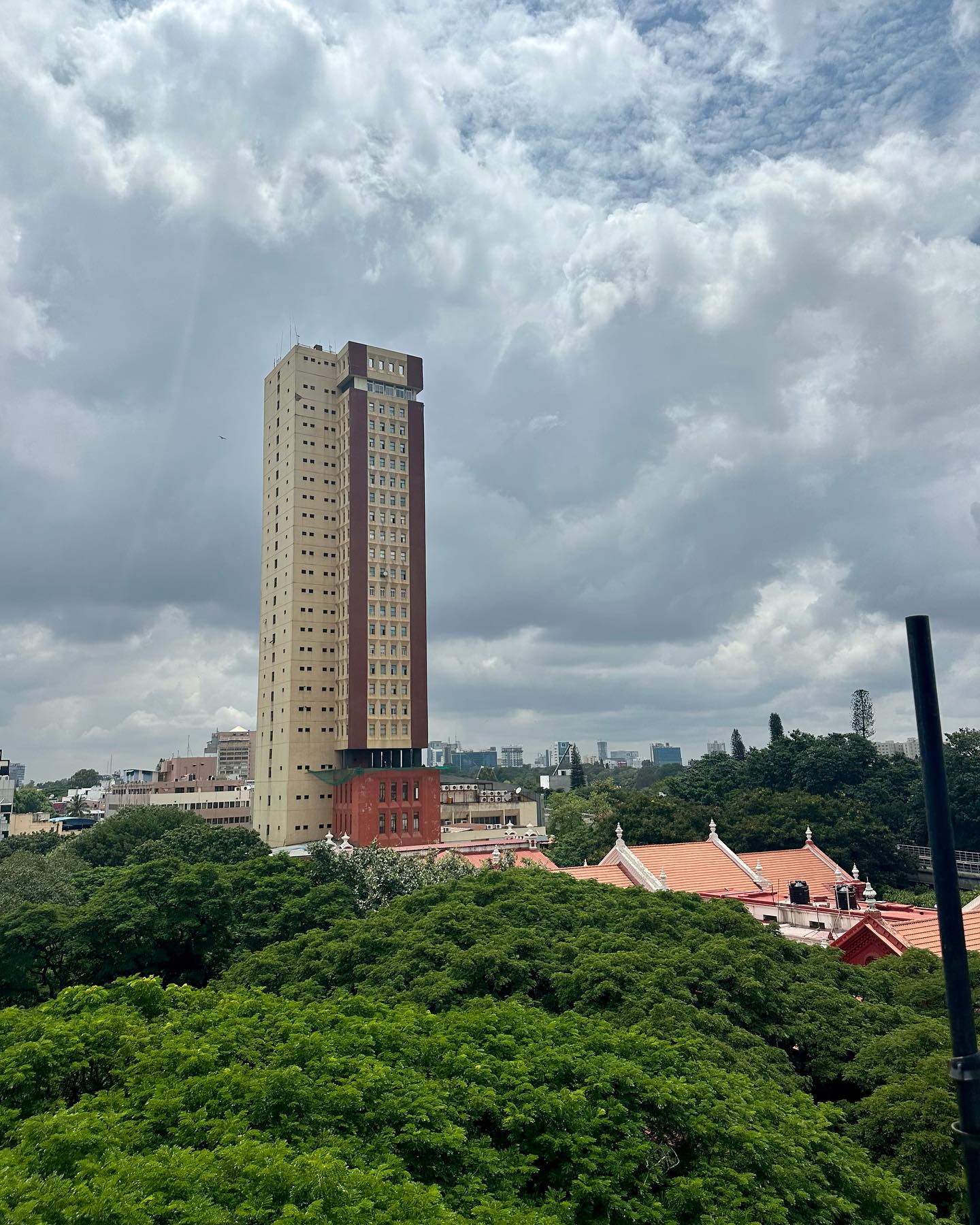エレベータを降りて、レストランのドアを開けた瞬間、ふわっと異次元に舞い込んだような感覚に襲われた。同時に、懐かしさが込み上げてきた。わたしたち以外、ゲストは誰もいない、しかし広々とした雰囲気のいいダイニング。窓からは、バンガロールの緑が見渡され、目の前には、かつてバンガロール唯一だった高層ビルディングが見える。