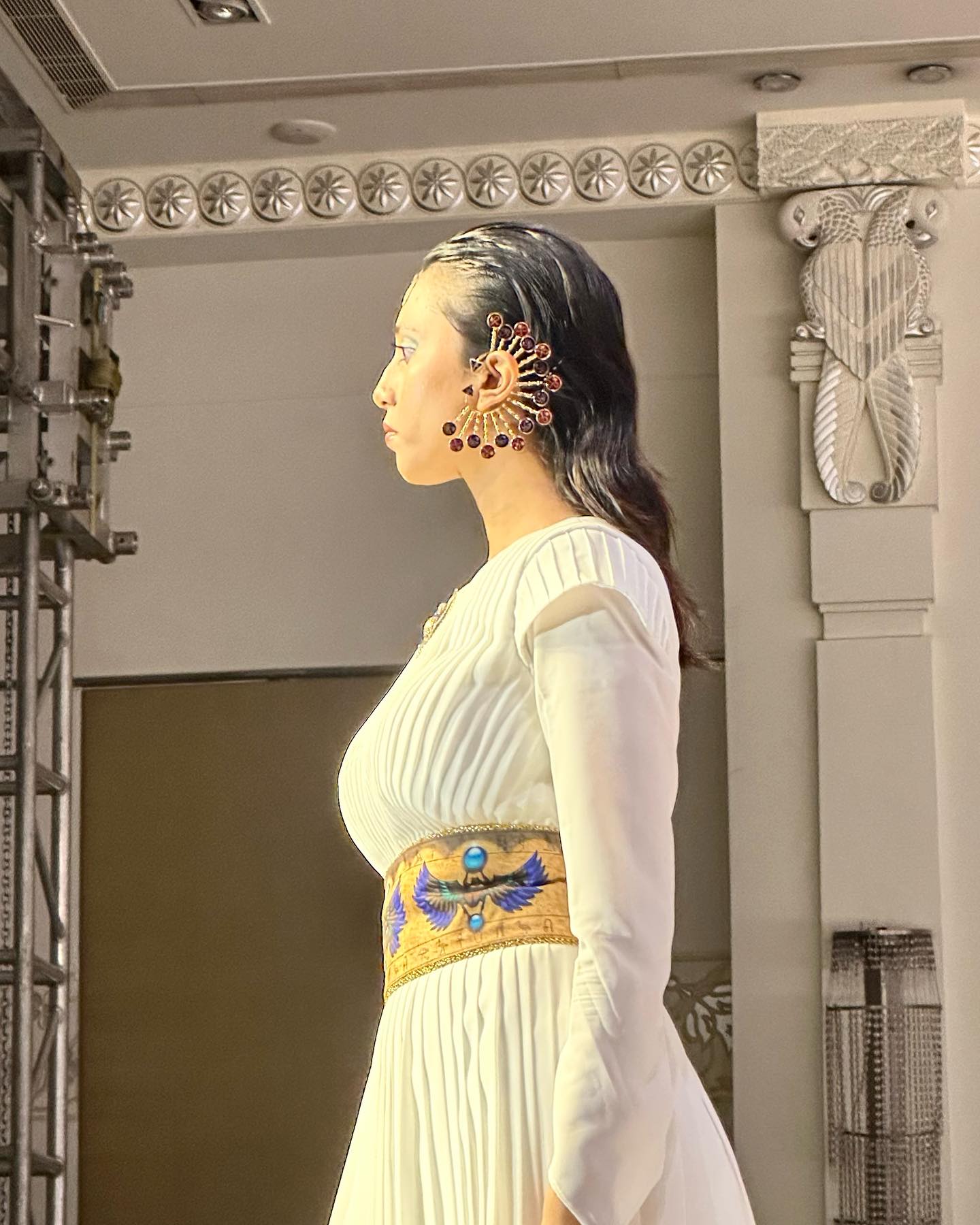 プレゼンテーションのあとは、古代エジプトの衣類に身を包んだモデルたちによるファッションショー。注目すべきはジュエリーだが、さすがに遠目には見えにくい。しかしながら、その豪奢でダイナミックな存在感は伝わってくる。催しのあとのディナーもおいしく、満ち足りた夜であった。