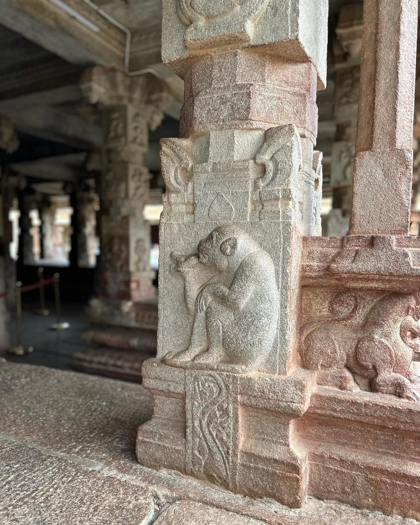 ハンピの寺院を彷彿とさせる支柱の連なる建造物や、シヴァ神の祝祭日に使われる山車やその車輪など、寺院の敷地内は興味深く、さらにはプジャー(儀礼)にも参加するなど、長居をしてしまう。行ってよかった。またゆっくりと訪れたいと思える寺院であった。