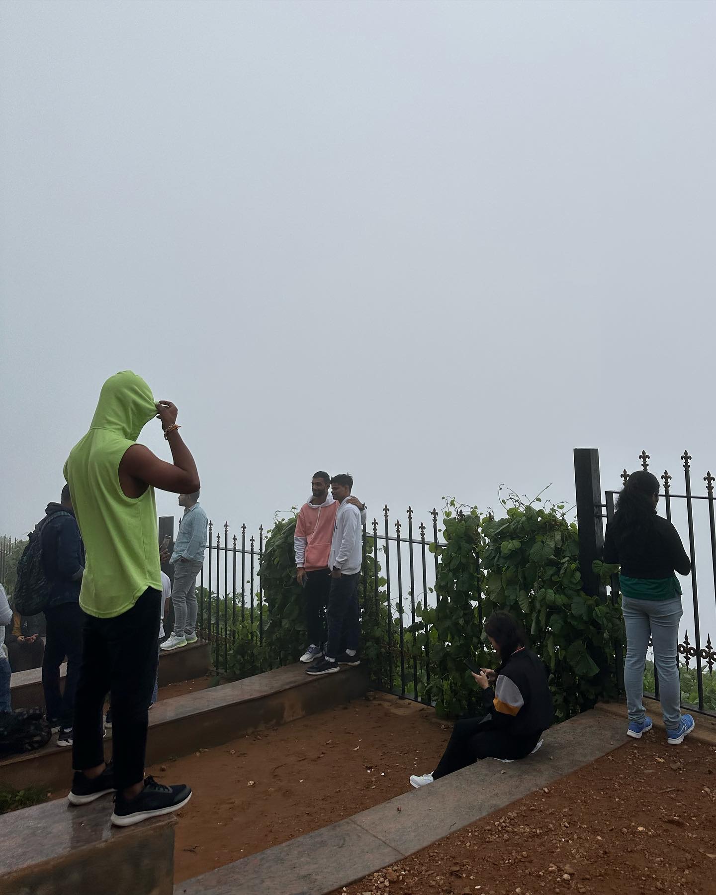 それにしても、靄の中でなお、写真撮影に余念がない若者ら。楽しそうである。彼らの目には、わたしには見えない何かが映っているに違いないと思わされるほどに、楽しそうだ。