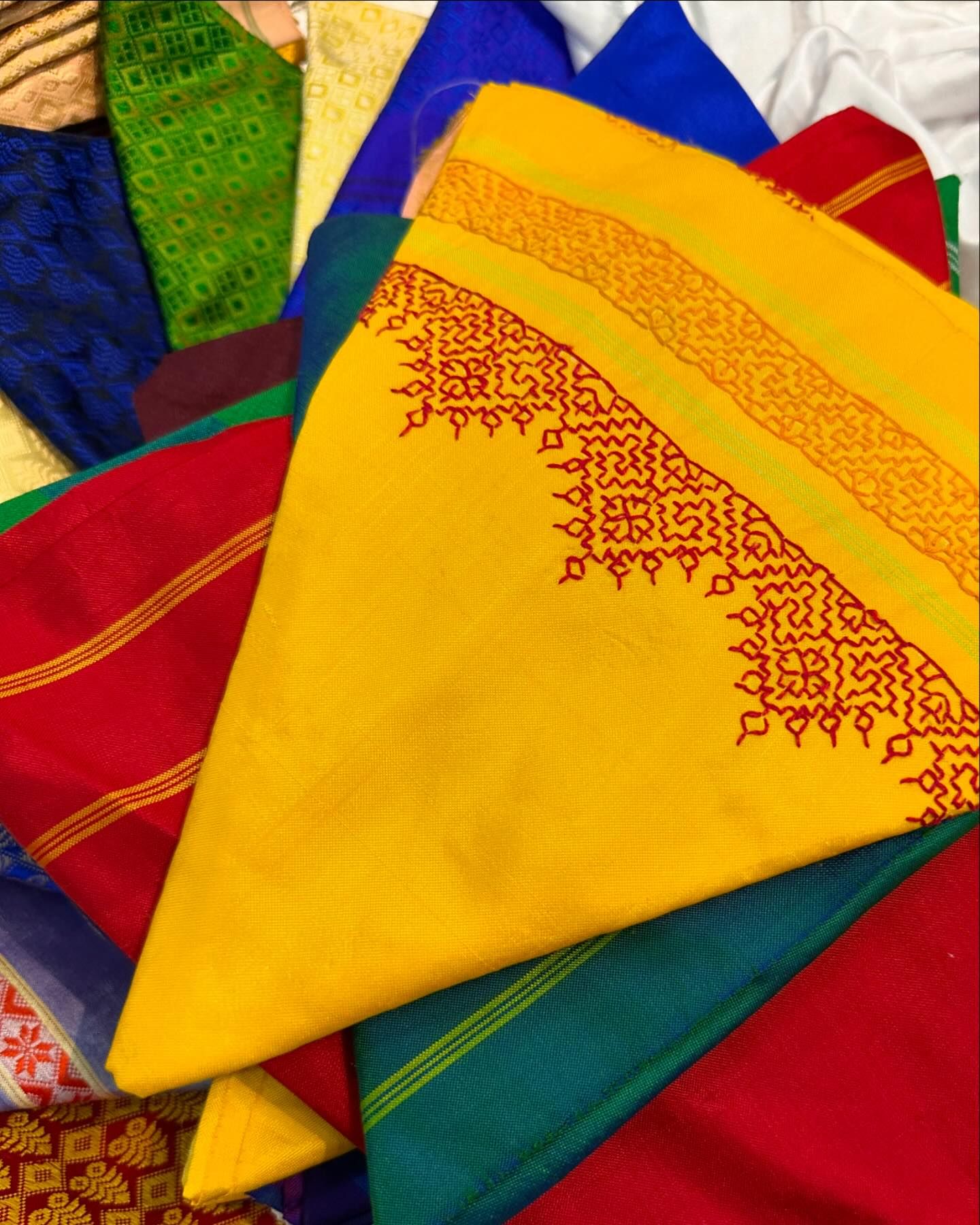インド各地の職人たちが手がけた、精緻な手織り布の数々……。もう、サリーを買ってはいけない。まだ着ていないサリーもあるのだ。しかし、欲しくなるものが次々に目に飛び込んできて、いけない。どうしよう。