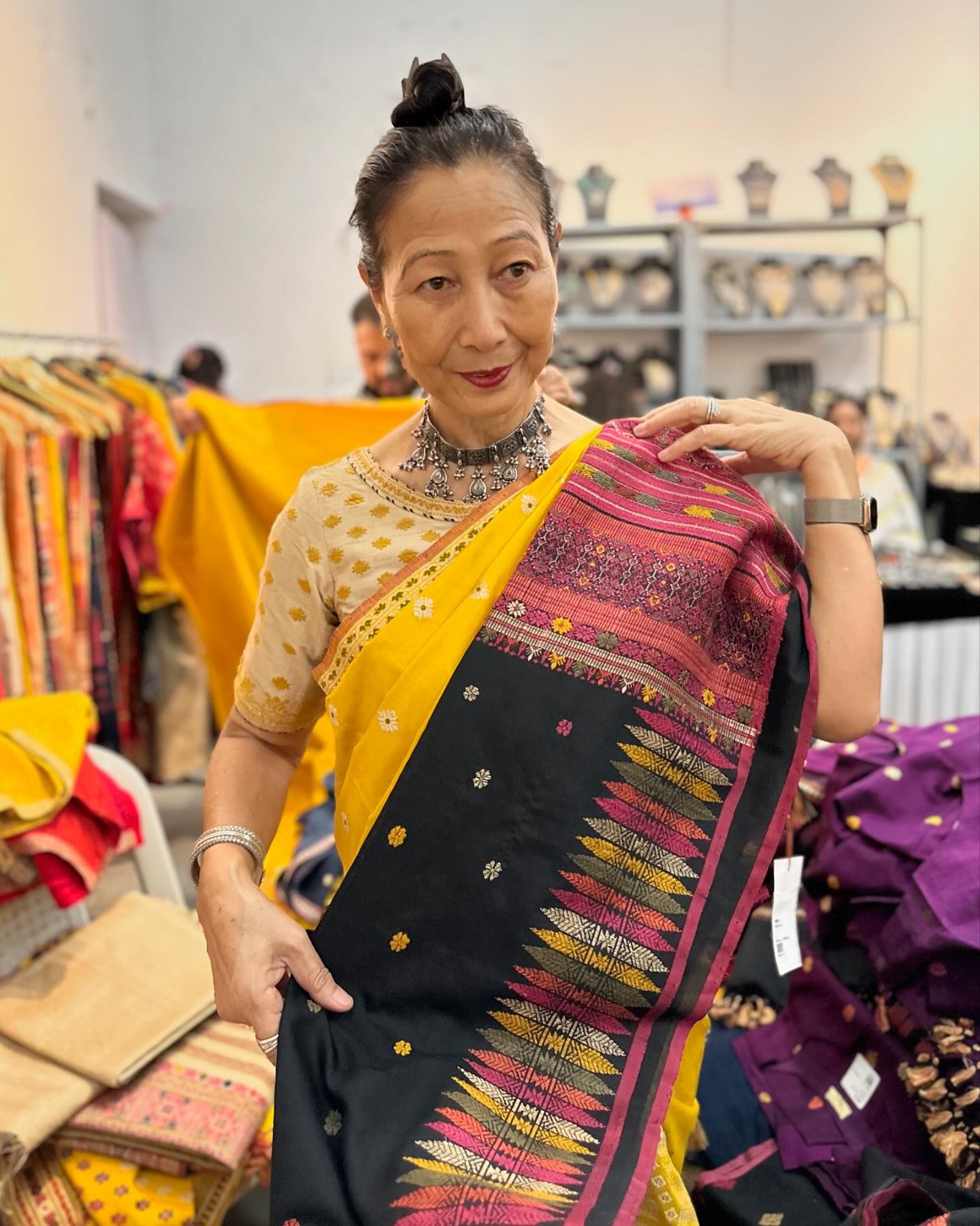 1枚目の写真。アッサム織りの一任者だという彼女の、サリー姿が粋で見惚れる。他にも顔見知りのヴェンダーが出店されていて……一つ一つの手法、技法についてもキャプションを添えつつ説明したいところだが、時間切れ。