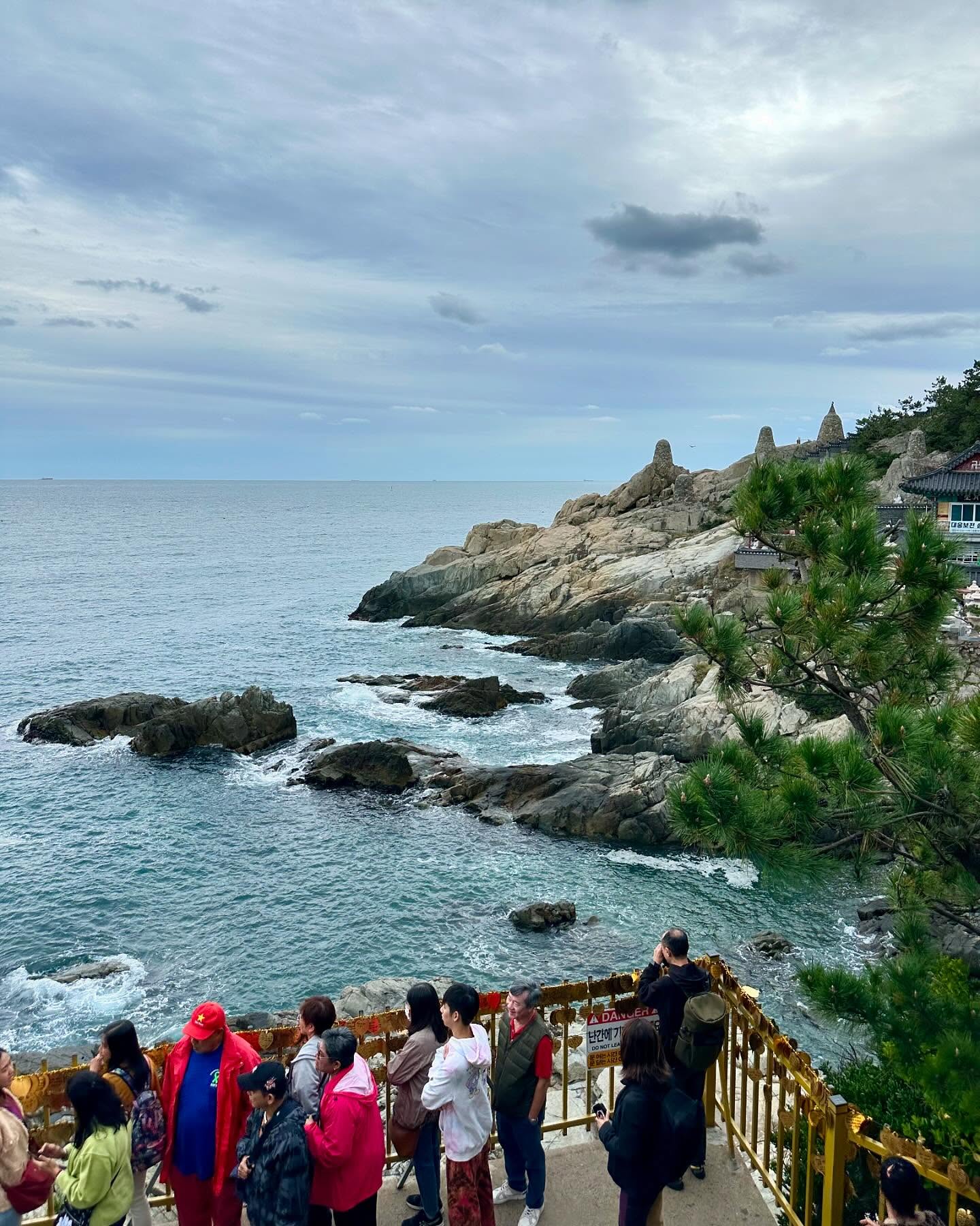 朝のソウル駅から高速鉄道のKTXに乗って約2時間半。釜山に到着した。ランチをすませたあと、海をのぞむ海東龍宮寺へ。晸庵(チョンアム)という僧侶が、この海辺で龍に乗り空を飛ぶ観世音菩薩の夢を見たことから、命名されたという。辰年に訪れるに縁起がよさそうな場所でもある。