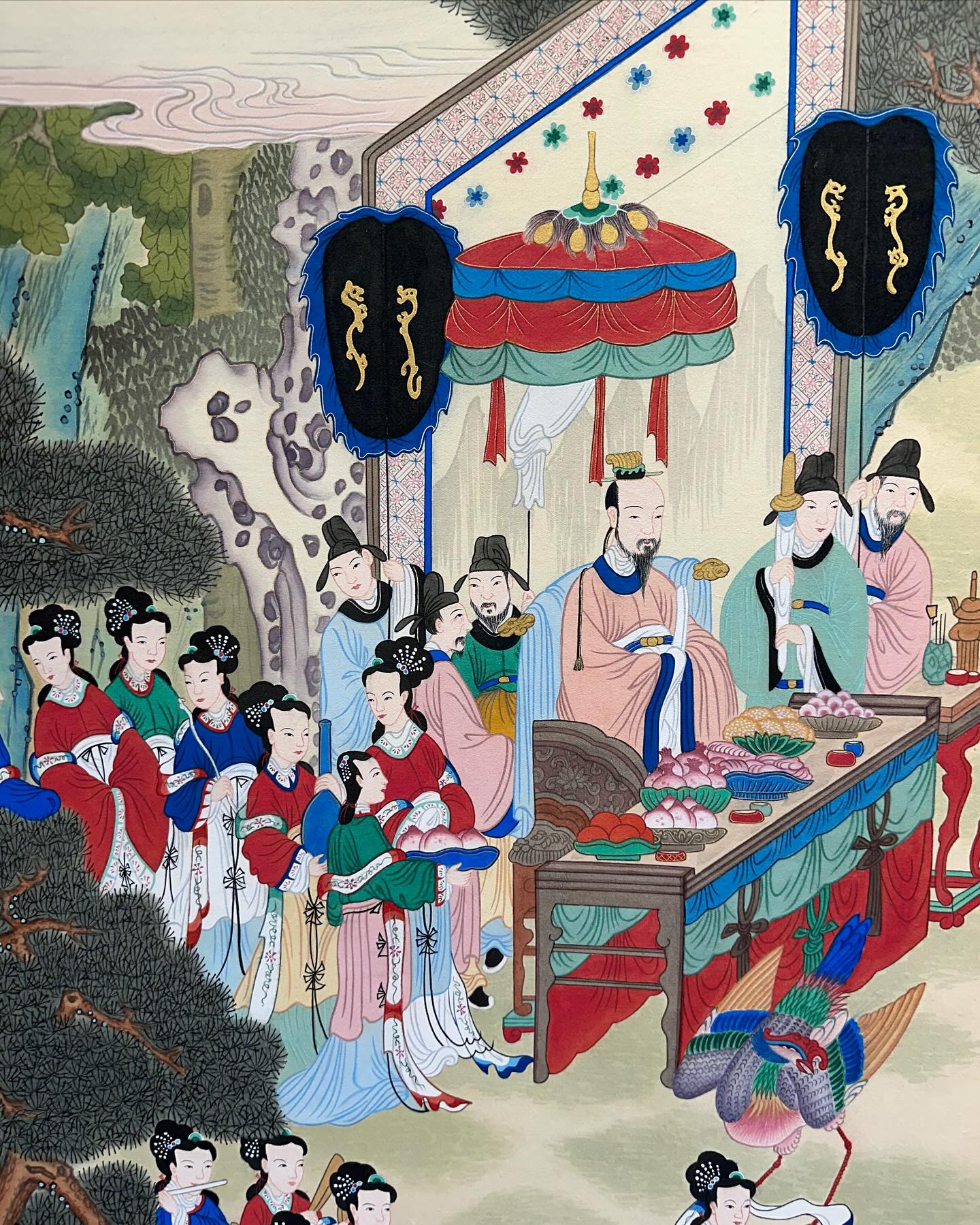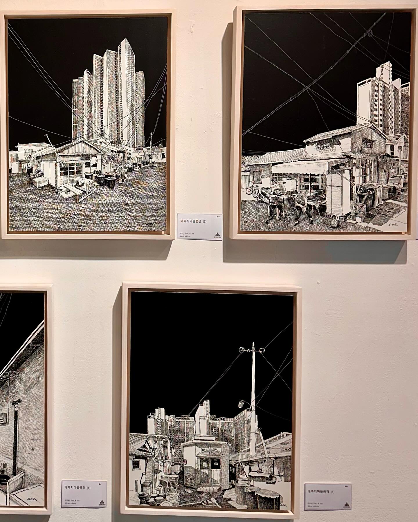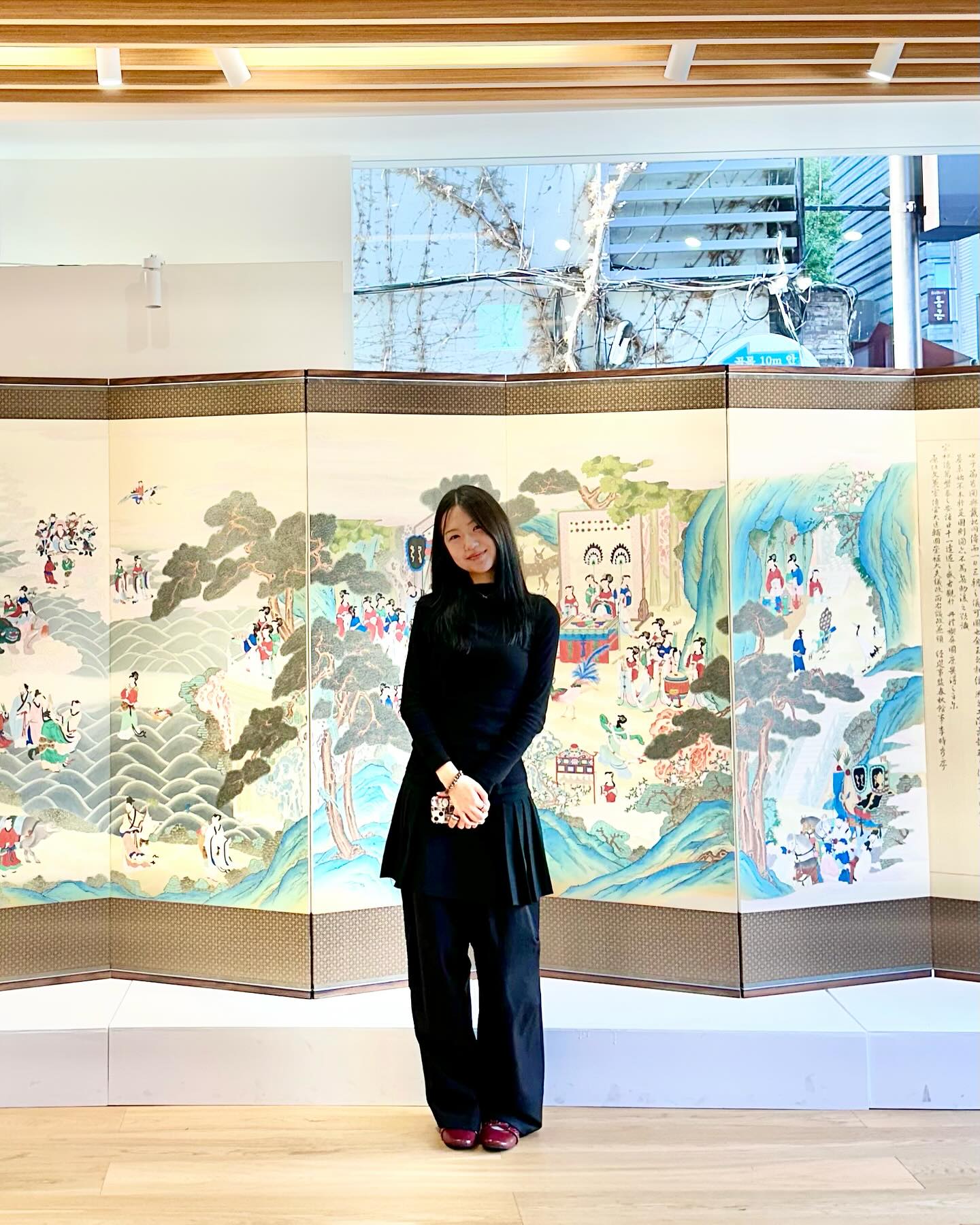 伝統絵画に引かれてドアを開けたギャラリーは、韓国伝統文化大学校(Korea National University of Culture Heritage)の卒業作品展だった。受付に座っている女学生2人に声をかければ、彼女たちも、自身の作品を出展しているという。学生たちは半年から8カ月ほどかけて、作品を仕上げたとのこと。いずれの絵画も、力強く見るものを引きつける。