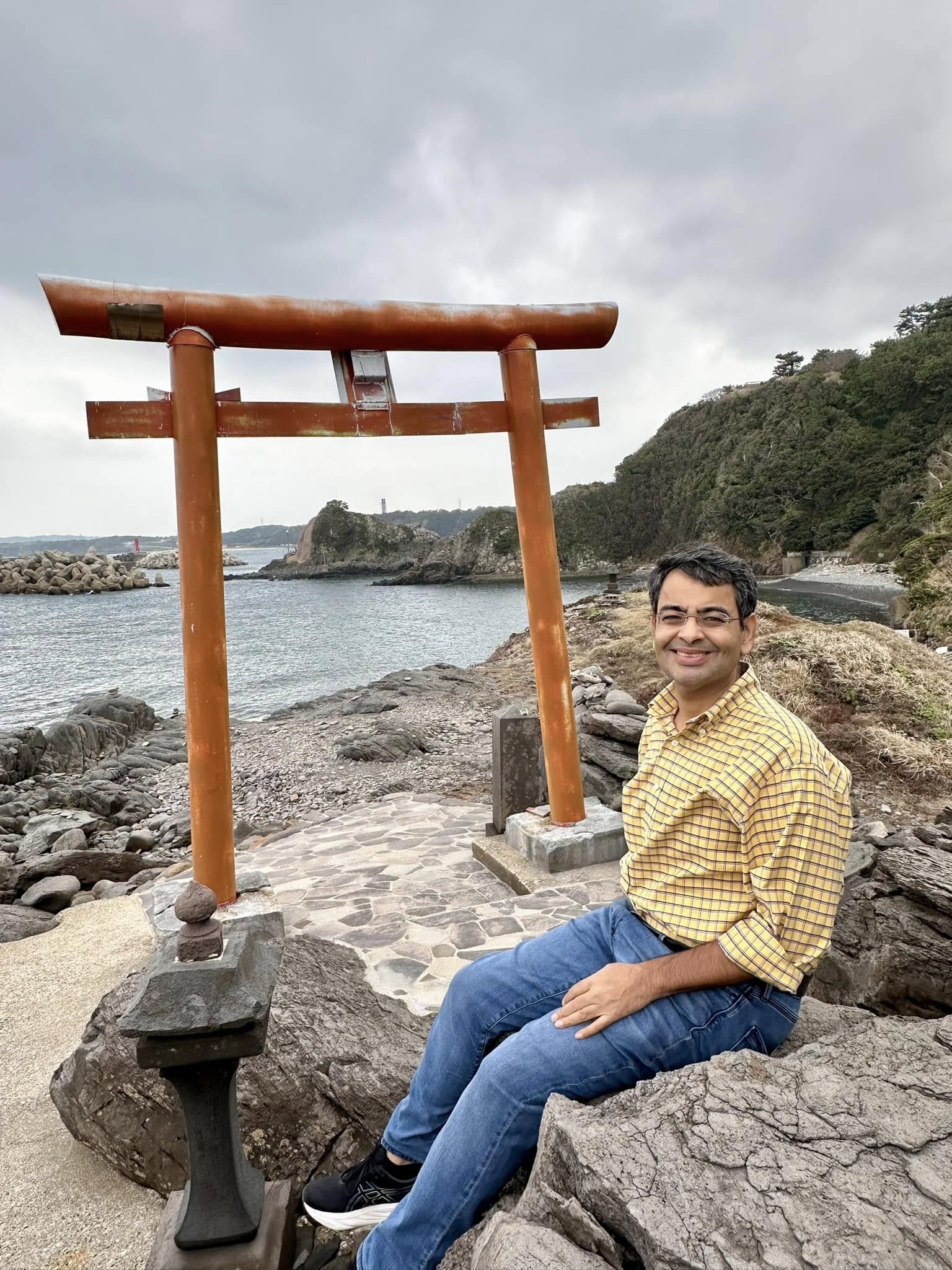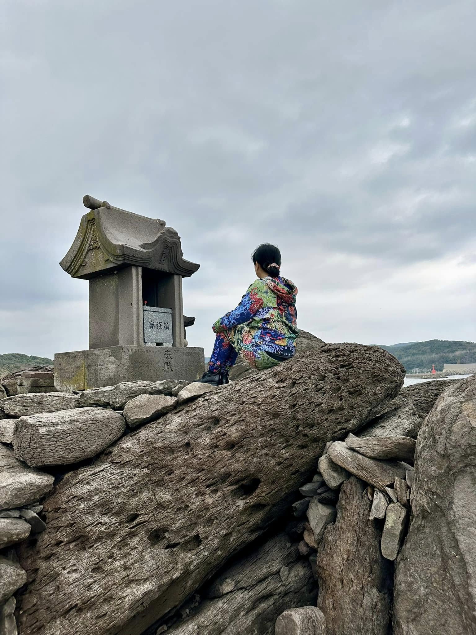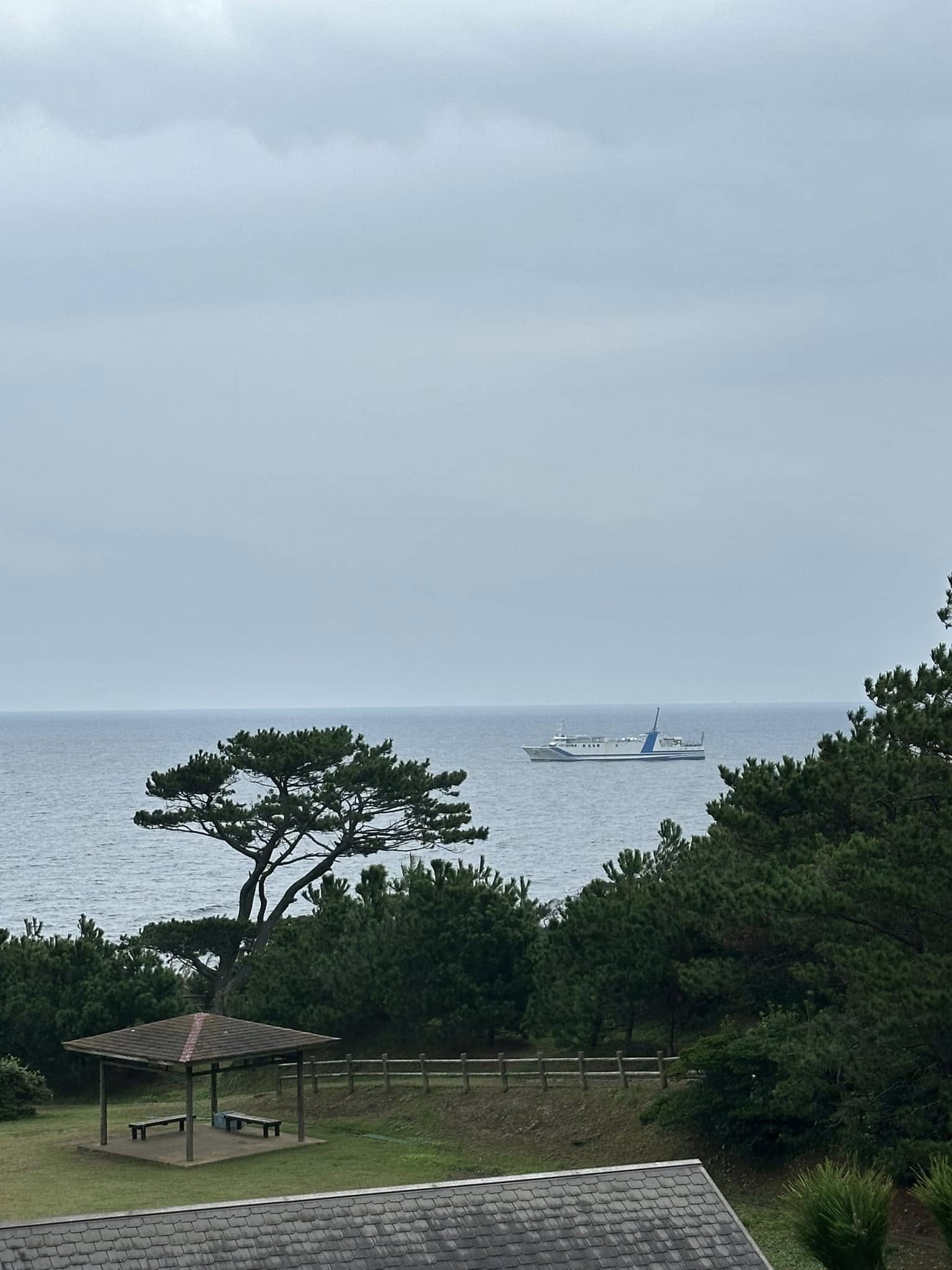 ちょうど1週間前の日曜日は、対岸の釜山の海東龍宮寺から、こちら側を眺めていた。同じような曇天で、しかしここは釜山ほどの観光地ではなく、この龍蛇神神社はわたしたちしかいなかった。