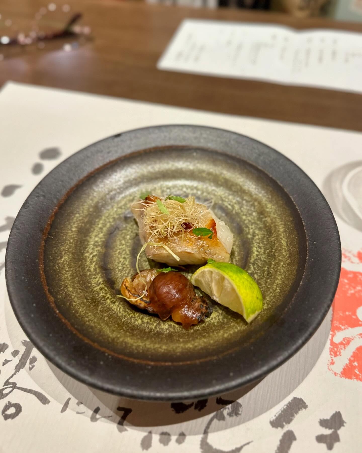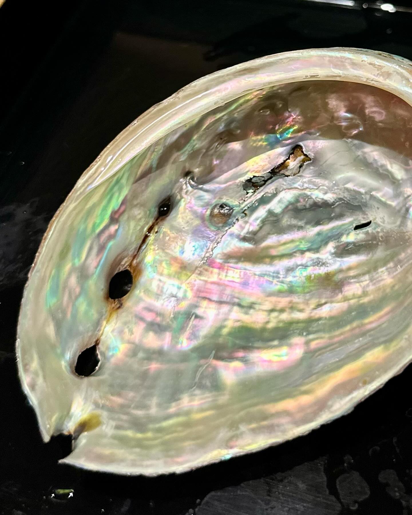壱岐の山海の幸を生かした料理がまた、すばらしい! 器の一つ一つもまた、心遣いが鏤(ちりば)められている。しかしながら、最も心惹かれたのは、アワビの貝の殻。その、唯一無二の美しさ……。
