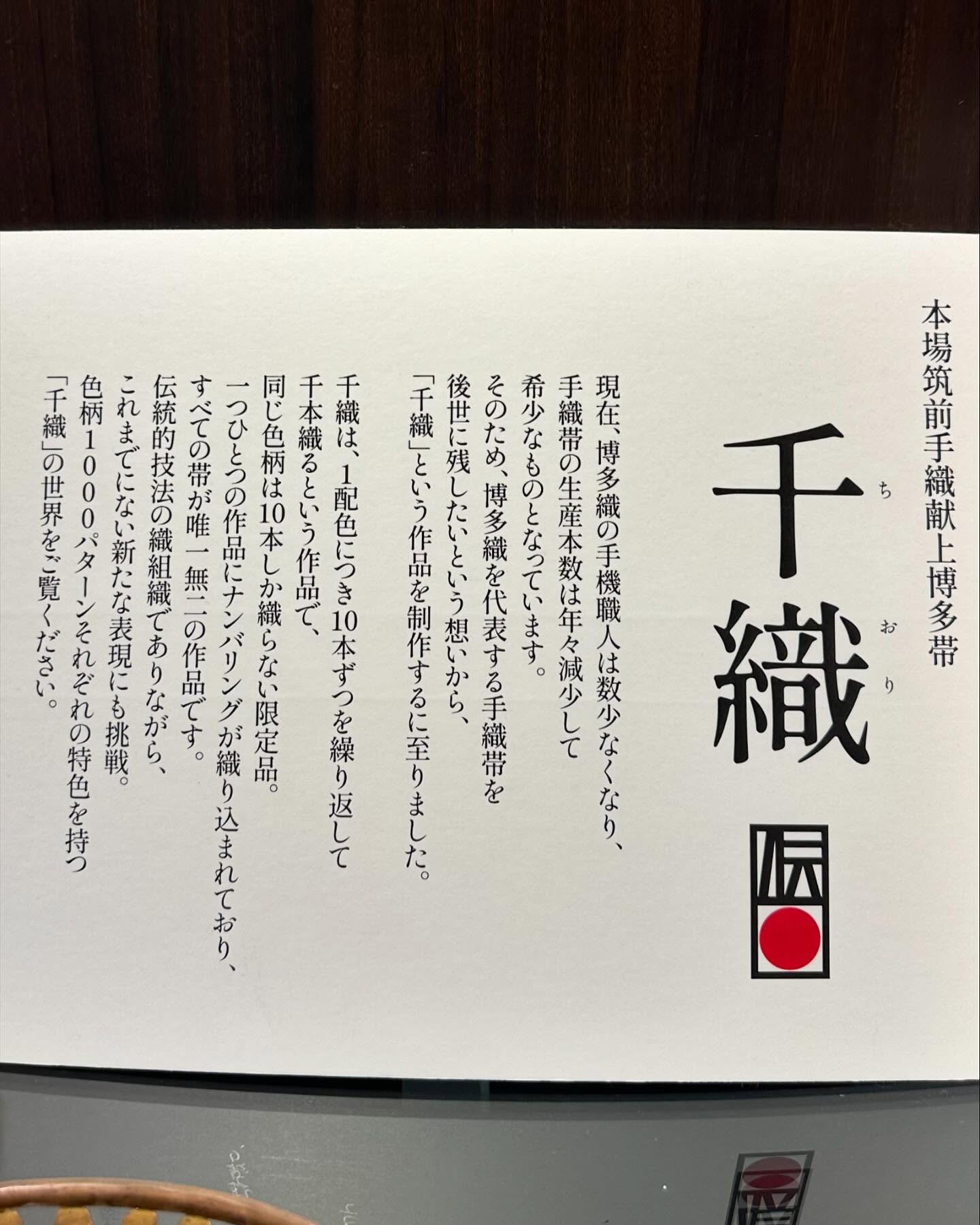 ちなみに博多織の帯は「男帯」が最初に誕生したという。「キュッ」と心地よく締まり、崩れないことから、刀などを差す際に重宝され、江戸時代には武家、武士侍に愛用された。昨年、幾度か開催した着物の展示会でも、インド人のゲストらにこの話をした。すると、強い関心を示してくれる。SAMURAIはパワーワードだ。