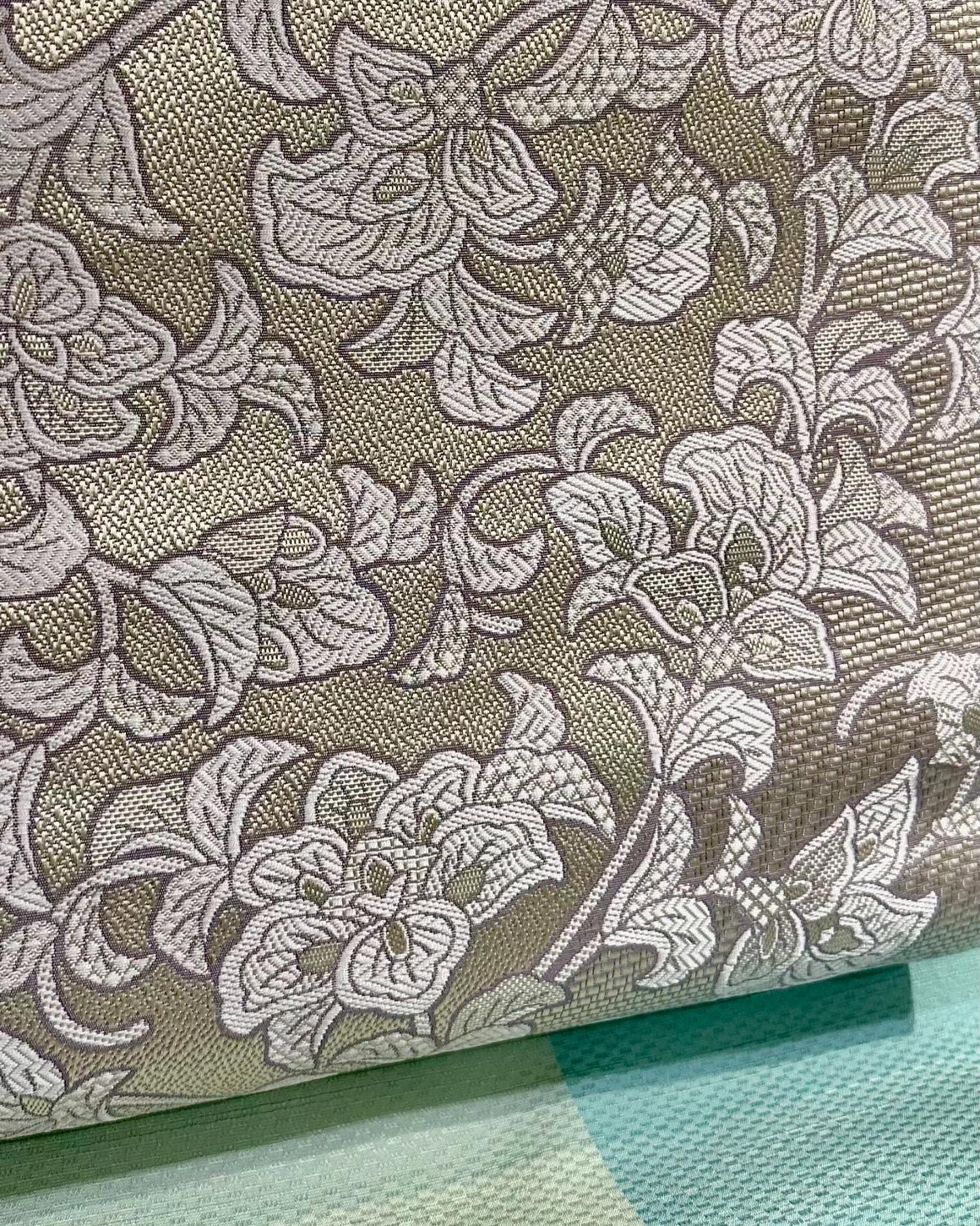 ホテルに隣接する博多リバレインは、和のテイストが生かされた、すてきなブランドの店舗がたくさん入っている。今回、目にとまったのは博多織の専門店OKANO。博多織といえば、独鈷(煩悩を打ち砕くとされる仏具、法器)と華皿(仏の供養の際、散布する花を入れる皿)の紋様をモチーフとした帯が有名で、それ以外の柄のことを、わたしはほとんど知らなかった。