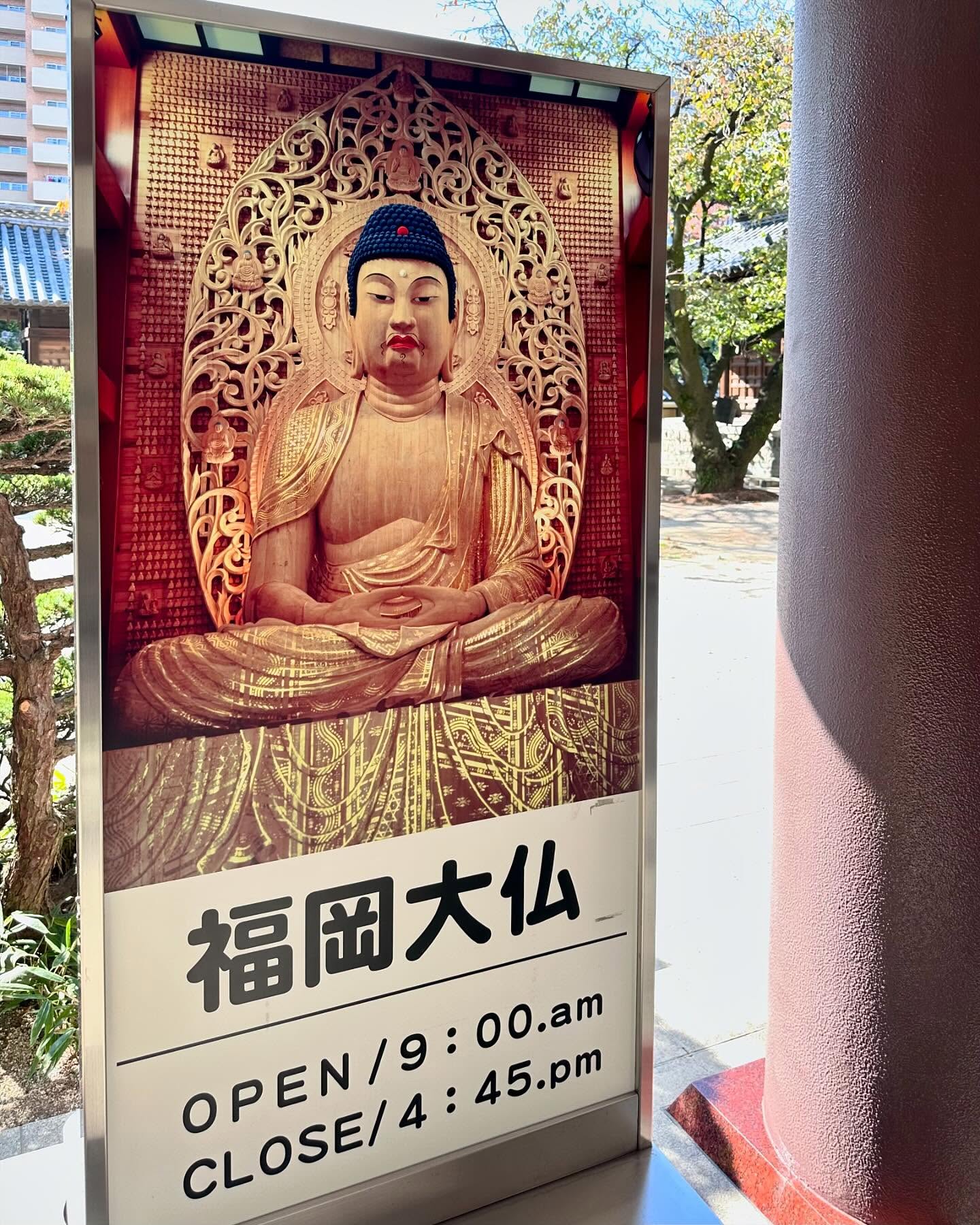 さて、夫は過去にも、有名な櫛田神社界隈には訪れたことがあるので、今回は東長寺へ福岡大仏を見に行くことにした。わたしが昨年初めて訪れて圧倒された場所だ。途中「龍宮寺」を参拝し、その向かいにある東長寺へ。福岡大仏は、写真撮影ができないので、看板だけを載せておく。とにかく、福岡の方々よ! ぜひとも一度、ここを訪れてほしい! 太宰府の「観世音寺宝蔵」に並んで、「灯台下暗しにもほどがある」場所である。