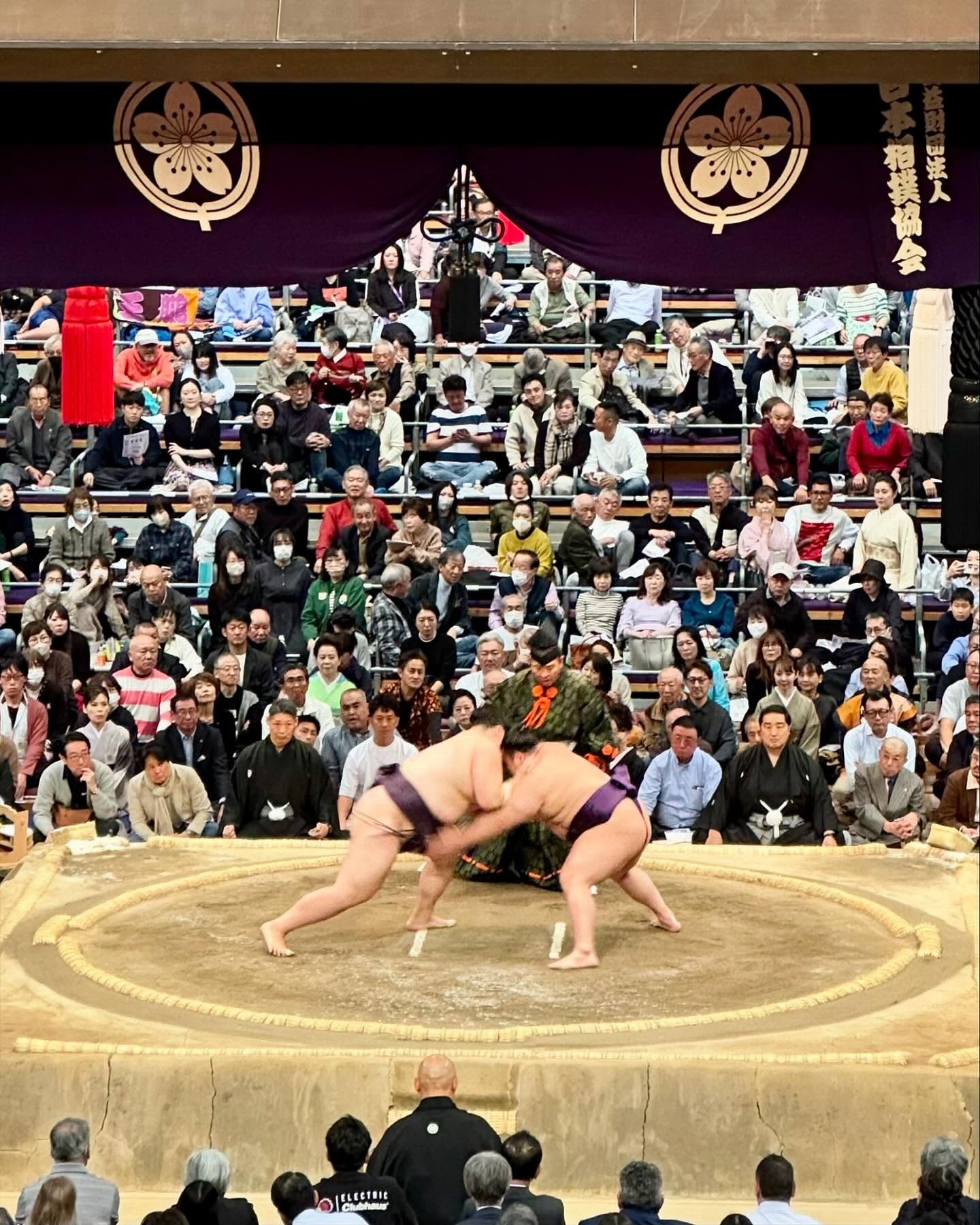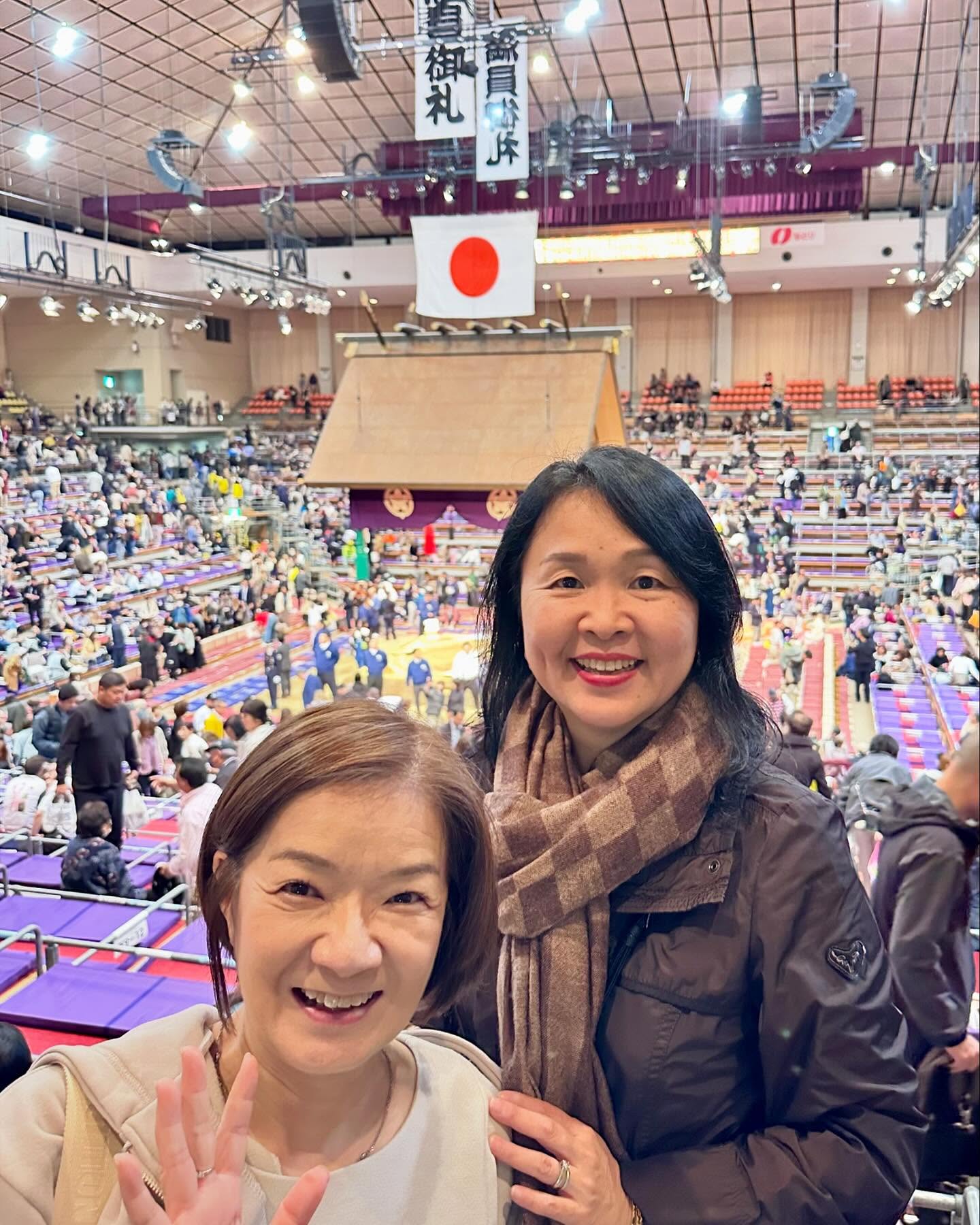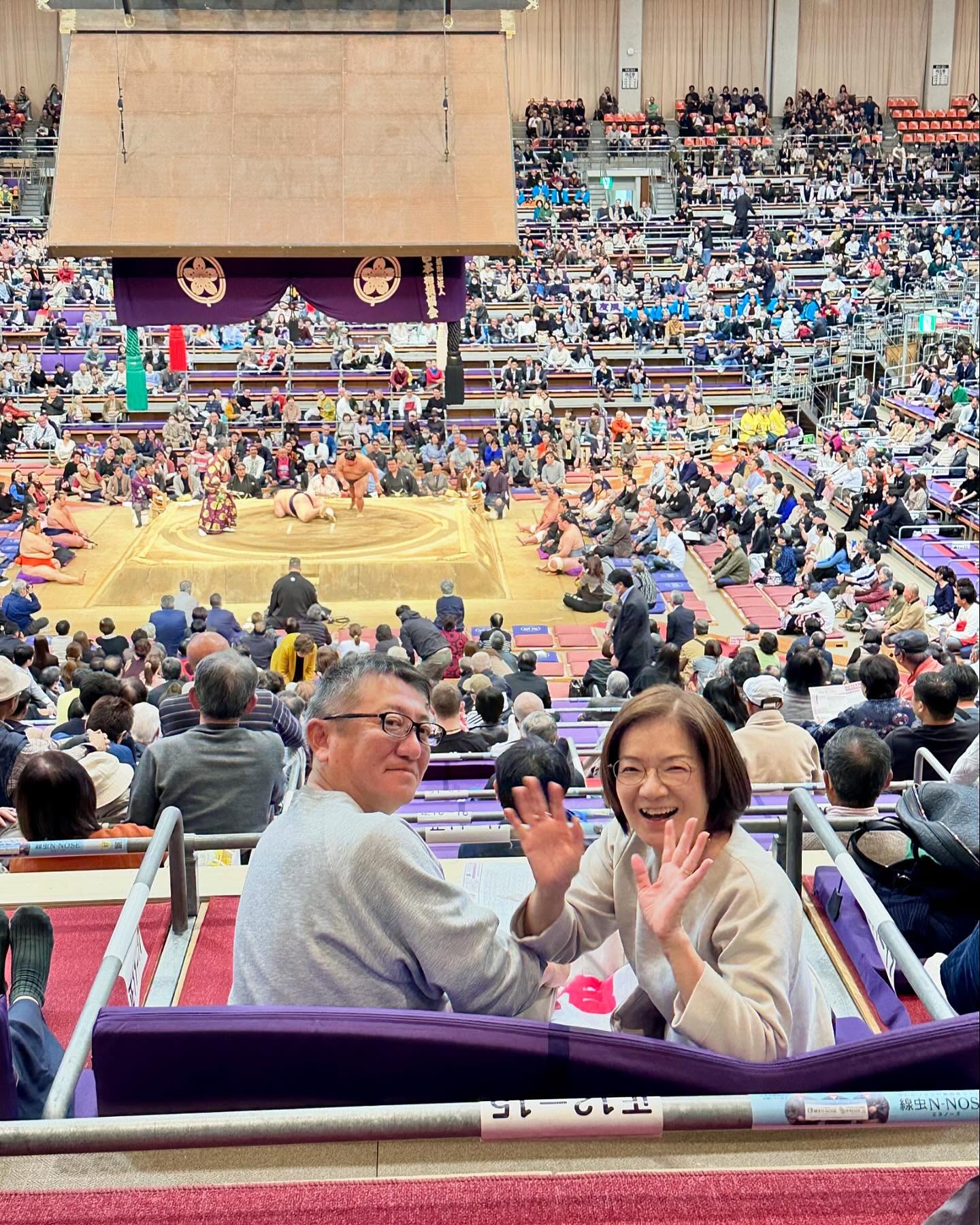 そのときに、たまたま相撲を見に行くという話になり、偶然にも同じ日だということは聞いていた。それだけでもすでに、かなり奇遇の域なのに、こんなにも近い席だとは! 二人して「怖い! 怖い!」と笑い合う。ご縁がある方とは、とことんご縁があるものなのだと思う。