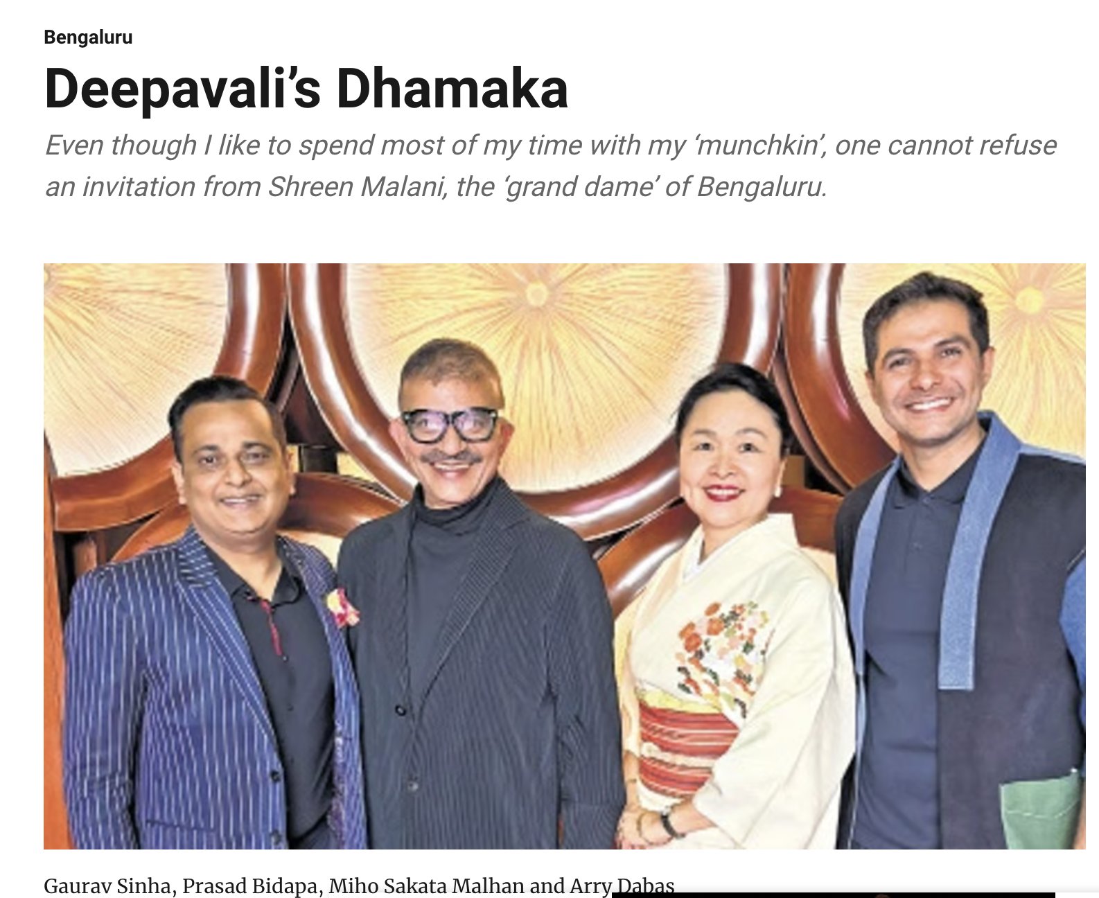 ……ところで、先月のサントリー主催の「着物ファッションショー」開催に際し、わたしに声をかけてくれた、バンガロール・ファッション界の第一人者Prasad Bidapa氏。彼が後日、ファッションショーについてDeccan Herald紙に記事を書いていた。