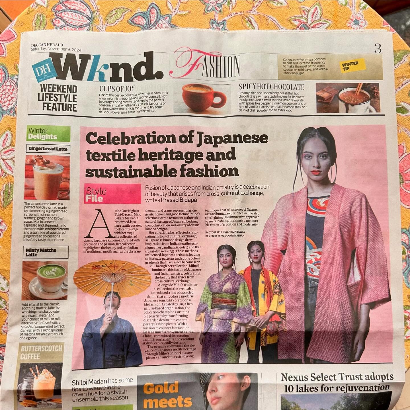 わたしが過去1年間に集めた母の着物を含む中古ながらも高品質な着物や帯、羽織のことなどや、インドと日本のテキスタイルのつながりなどについて、言及している。とてもすばらしい記事を書いていただいて光栄だ。わたしの写真はないが、わたしの浴衣や母の羽織、父の浴衣、中古で買った銘仙の羽織を着たモデルの写真が美しく掲載されている。