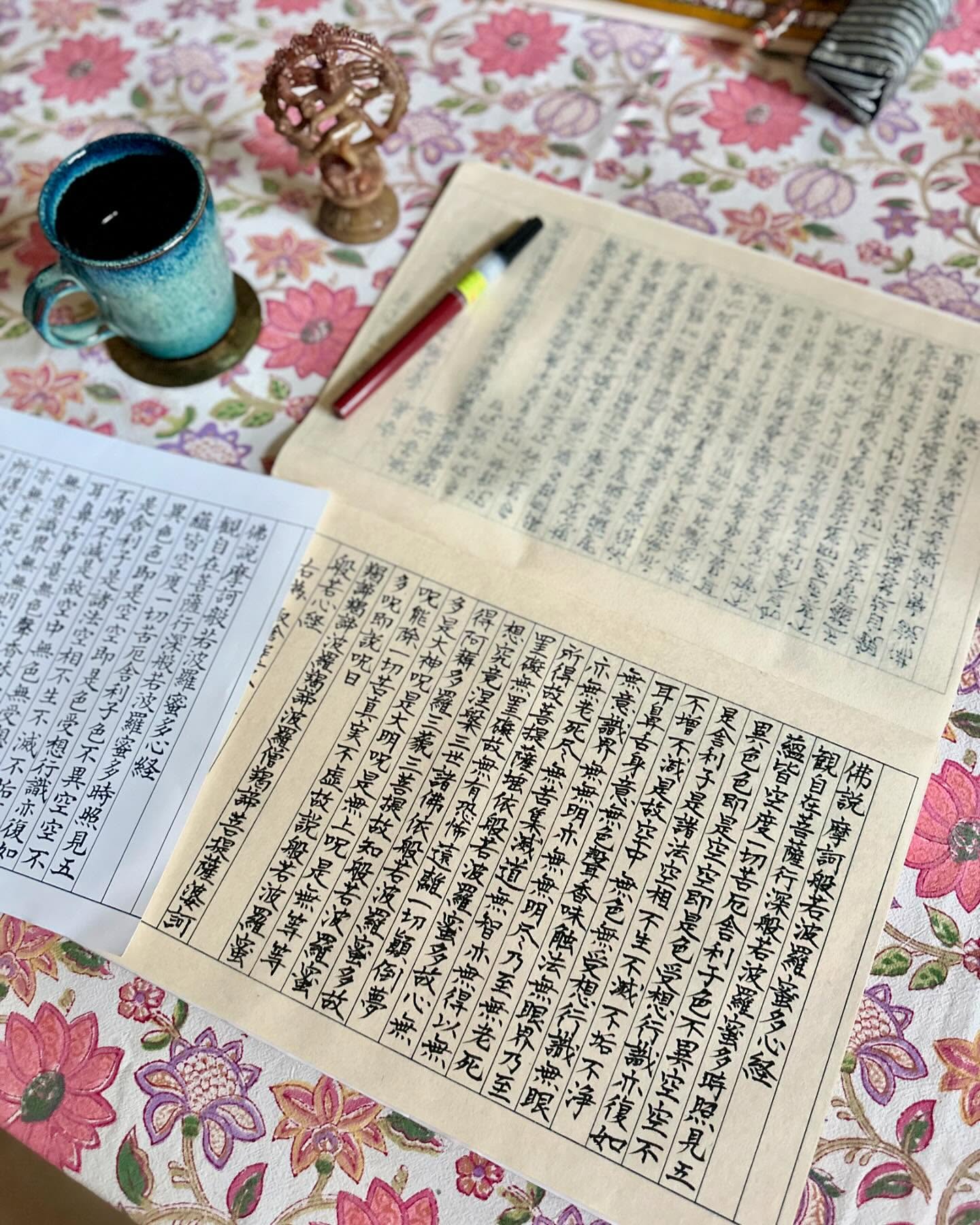 昨年の終わり、日本のAmazonで注文していた写経のノート。あれこれと比較検討して選んだだけあり、紙質もよく、書きやすい。手本を見ながら書く。唱えながら、書く。