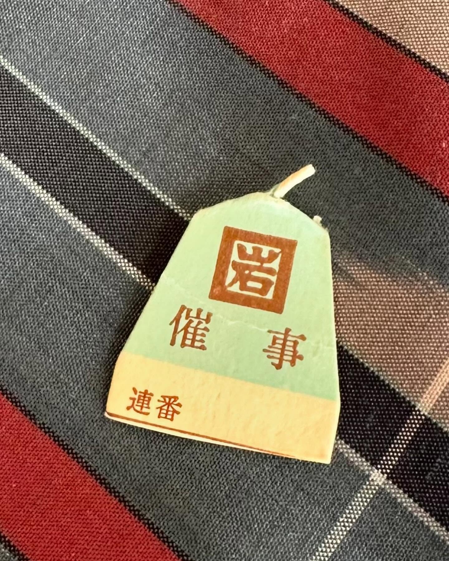 この着物、中古とはいえ、袖が通されていない「新品」である。着物の端に正札がついていた。福岡市のデパートの代名詞ともいうべく「岩田屋」のロゴだ。しかし、これは古い商標だ。調べてみたところ、現在のロゴに変わったのは昭和10年(1935年)で、これはそれ以前に使われていたものらしい。