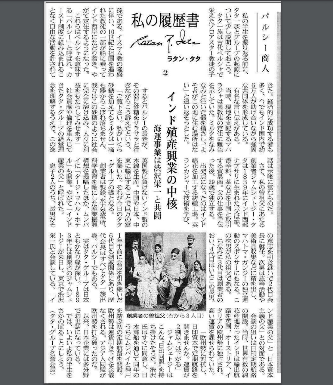 ããããã»ãããŒã§æ¯åèªã£ãŠããææ²»ç¶æ°ä»¥éã®æ¥æ¬ãšã€ã³ãã«é¢ããã«ãããŠãããã®äº€æå²ã®èãšãªã£ãã®ã¯ç¶¿è²¿æã ã1893幎ãã¿ã¿ã»ã°ã«ãŒãïŒç¶¿è²¿æäŒç€ŸãšããŠåµæ¥ïŒã®åµå§è ã§ãããžã£ã ã·ã§ããžãŒã»ã¿ã¿ãæ¥æ¥ããæžæ²¢æ äžãšäŒåããã®å¹Žã«ãæ¥æ¬ãšã€ã³ããç¶¿è±ã®çŽæ¥ååŒããã¹ããæ¥æ¬éµè¹ãéããŠæ¥å°ã®å®æèªè·¯ãéèšãããããããè¿ä»£ã«ãããæ¥å°ã®äº€æµã掻çºã«ãªãâŠâŠã