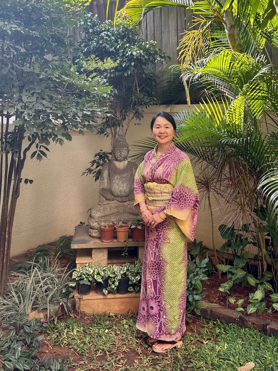 ãã®æ¥ã¯ãææŸçµãã®æµŽè¡£ãçãŠåºãããããã€ãã®ããã«ãã»ãŒ100ïŒ ãBandhaniïŒã€ã³ã倿¥ã®çµãæãïŒã§çç©ãäœã£ãã®ãïŒããšèšãããããã®è²åããç¹ã«ãBandhaniãã€ã¹ãã«äŒŒãŠããããšããããæ¥æ¬ã«ãããŠãäŒçµ±çãªææ³ãªã®ã ãšèšã£ãŠããããŸãã«ãã€ã³ãã®çµãæããšäŒŒãŠããããšãããããã«çè§£ããŠããããªãã®ã ã