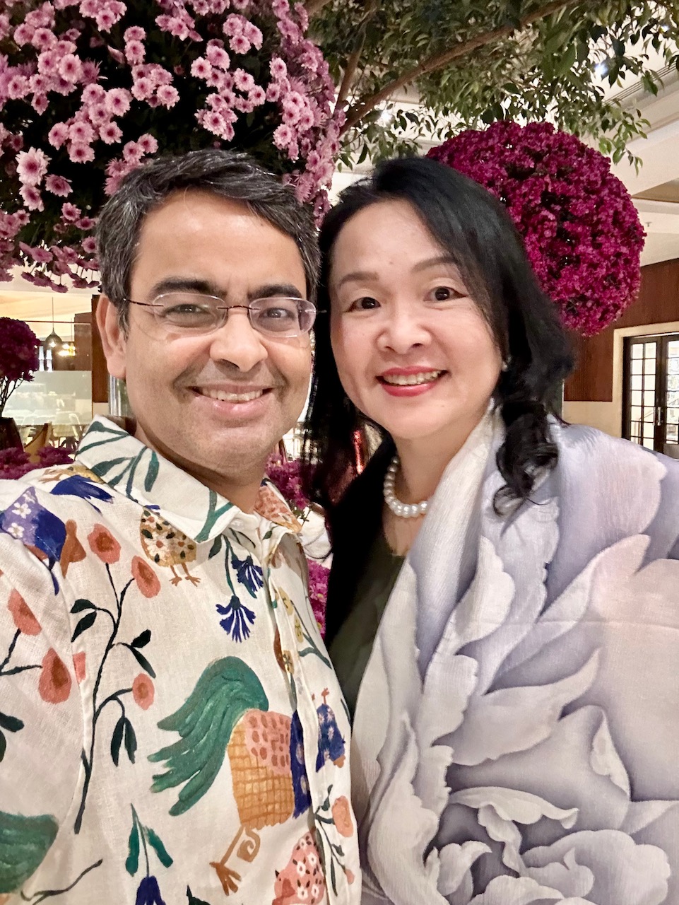 実は、外出の数時間前まで、疲れ気味だったからキャンセルしようかと思っていた。しかし、白い牡丹を身に纏ったら、なんだか元気が出てきた。この夜は、Integration Dinner。人々と少し深めに交流するのが目的だった。