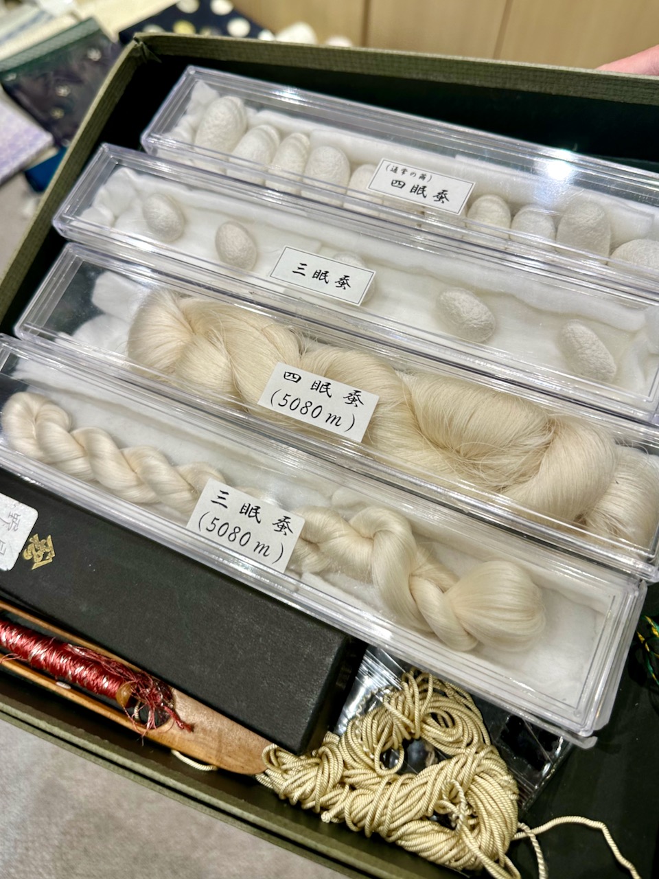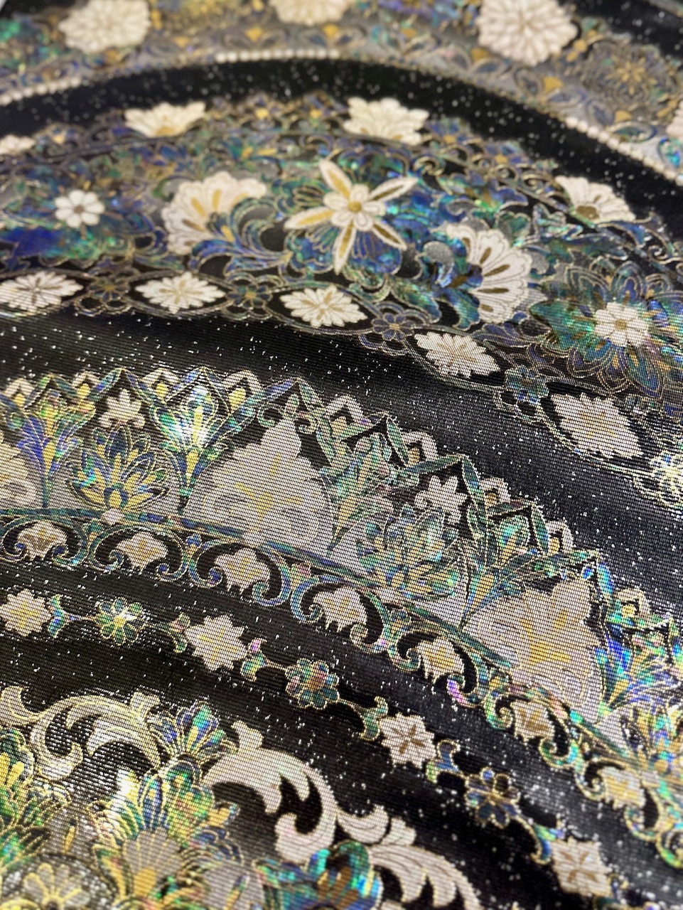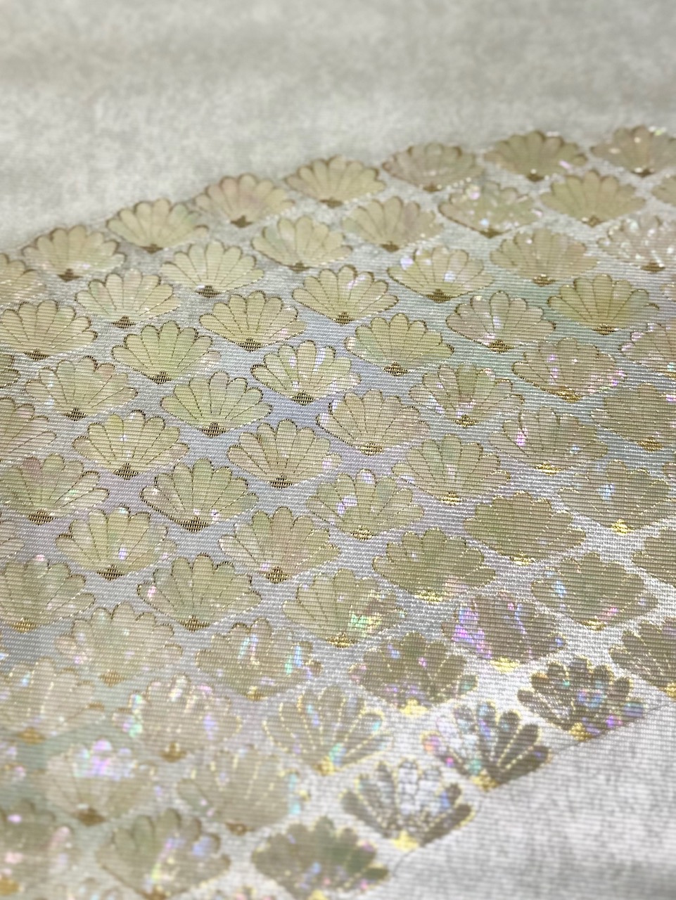 ããã«ç®ãåŒããã®ã¯ãå人ã®Yashoãæ±äº¬æ ã§å ¥æããããšã§åããŠç¥ã£ããèºé¿åŒãç®ããšåŒã°ããææ³ã§ç¹ããã垯ã ãåŒãç®ãšã¯ã西é£ç¹ã®æè¡ã®ã²ãšã€ã§ãåçŽã®è¡šé¢ã«éãéã®ãç®ïŒãã¯ïŒãã貌ãããããããã现ã糞ã®ããã«è£æãããã®ã§ç¹ããç¹ç©ã®ããšãèºé¿åŒãç®ãšã¯ãè²æ®»ã®å åŽã®èŒãéšåãäžå¯§ã«å¥é¢ããæè»ã«ãªãããŠåçŽã«è²Œãã糞ç¶ã«è£æããŠåž¯ã«ç¹ã蟌ãã ãã®âŠâŠããšãããè¶ çµ¶æå·§ãåæ ãããç¹ç©ãªã®ã ã