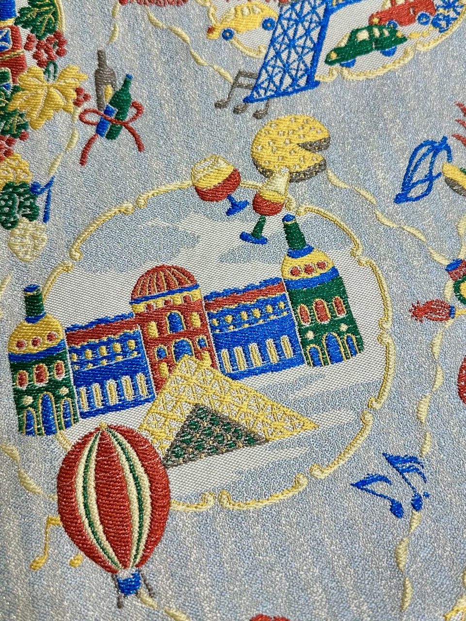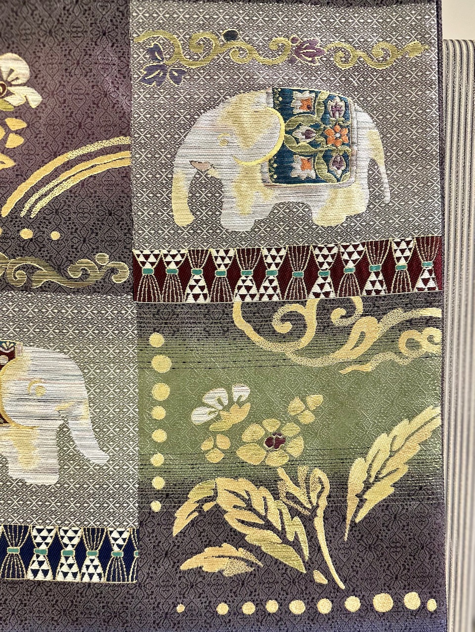 ã¡ãªã¿ã«çŽ¹å·Žç¹ïŒãããã¯ããïŒãšã¯ã西é£ç¹ã®ä»£è¡šçãªç¹ç©ã§ãäžåœç±æ¥ã®çµ¹ç¹ç©ãäžæ¹ããŽãã©ã³ç¹ãšã¯ãã©ã³ã¹èµ·æºã®ã¿ãã¹ããªãŒã ããã®åž¯ã«ã¯ãäºè²ã®çµç³žãçšãããããŽãã©ã³ç¹ãšçŽ¹å·Žç¹ã®æè¡ãèåããŠç¹ããªãããŠããããšãããããŽãã©ã³çŽ¹å·ŽïŒãããã°ïŒããšåä»ããããŠããããã ã
