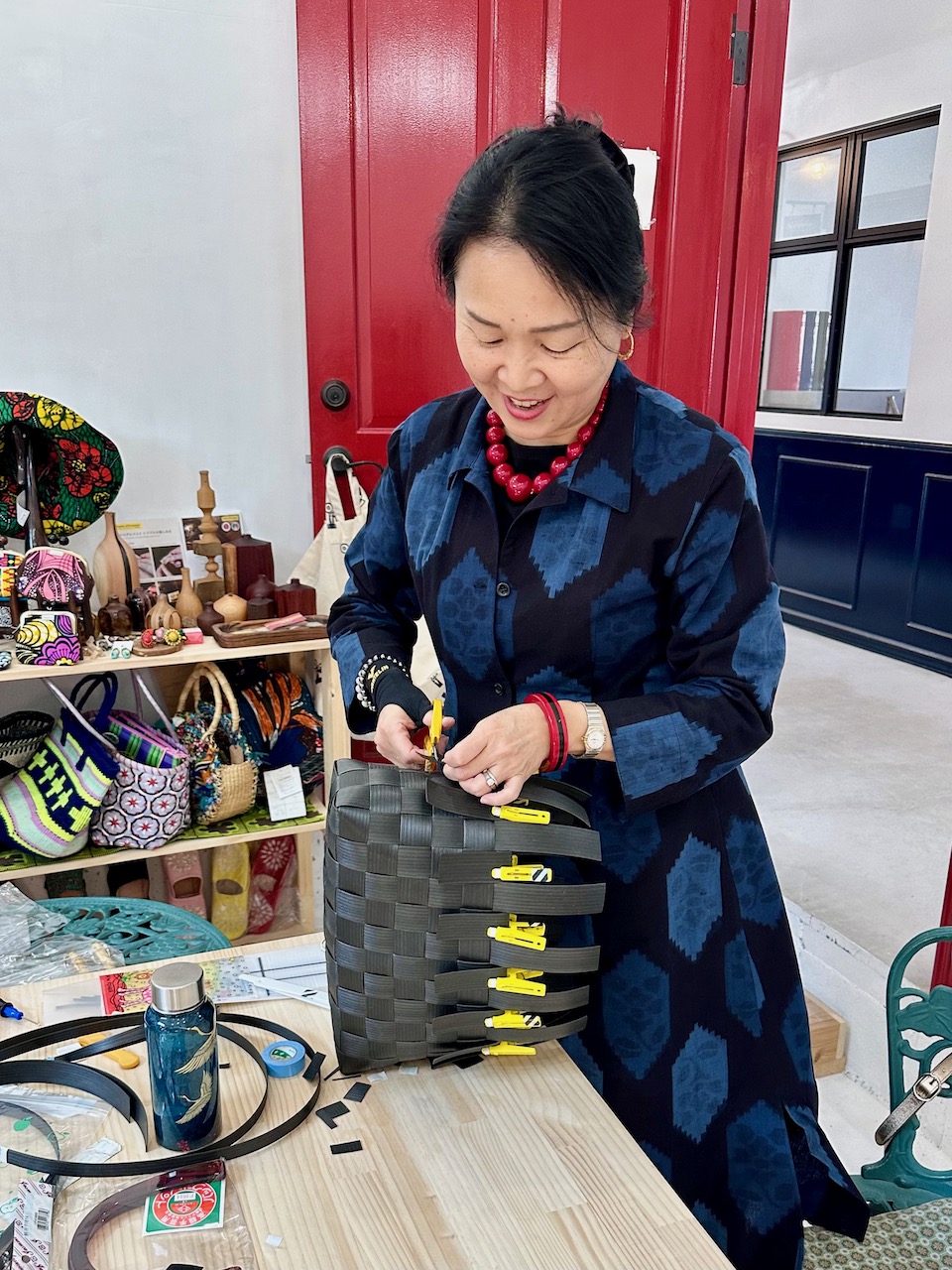 バッグ作りは想像していた以上に楽しかった。難しすぎず、簡単すぎず、ちょうどいい塩梅。集中しつつ、おしゃべりしつつ、形にできる。軽くて丈夫、実用的で、見た目もかわいらしいのがすばらしい。異なる色やデザインで作りたくなった。ミューズ・クリエイションの活動でも、こういうハンディクラフト作りをまた再開したいと思いつつ……尽きぬ。