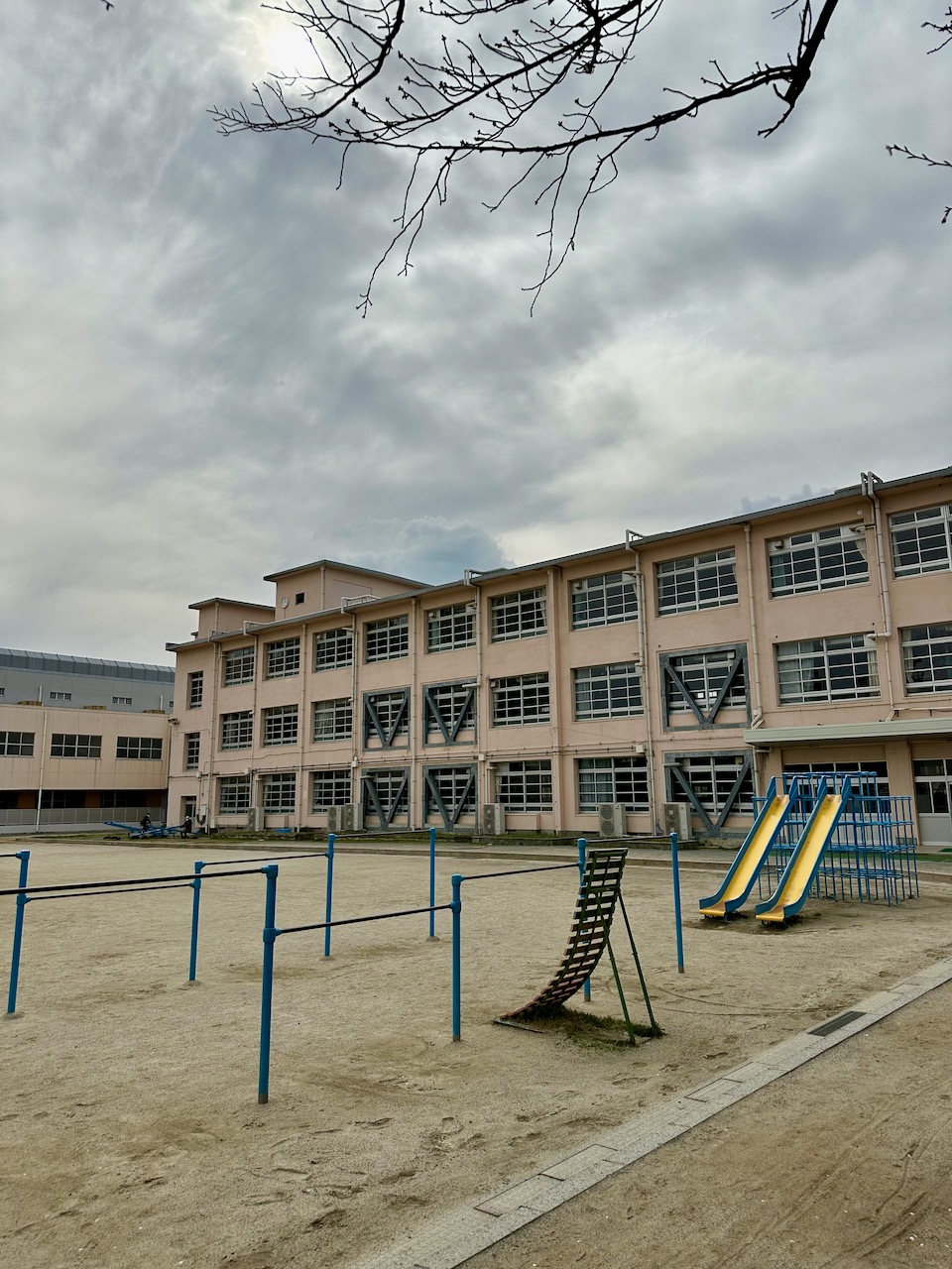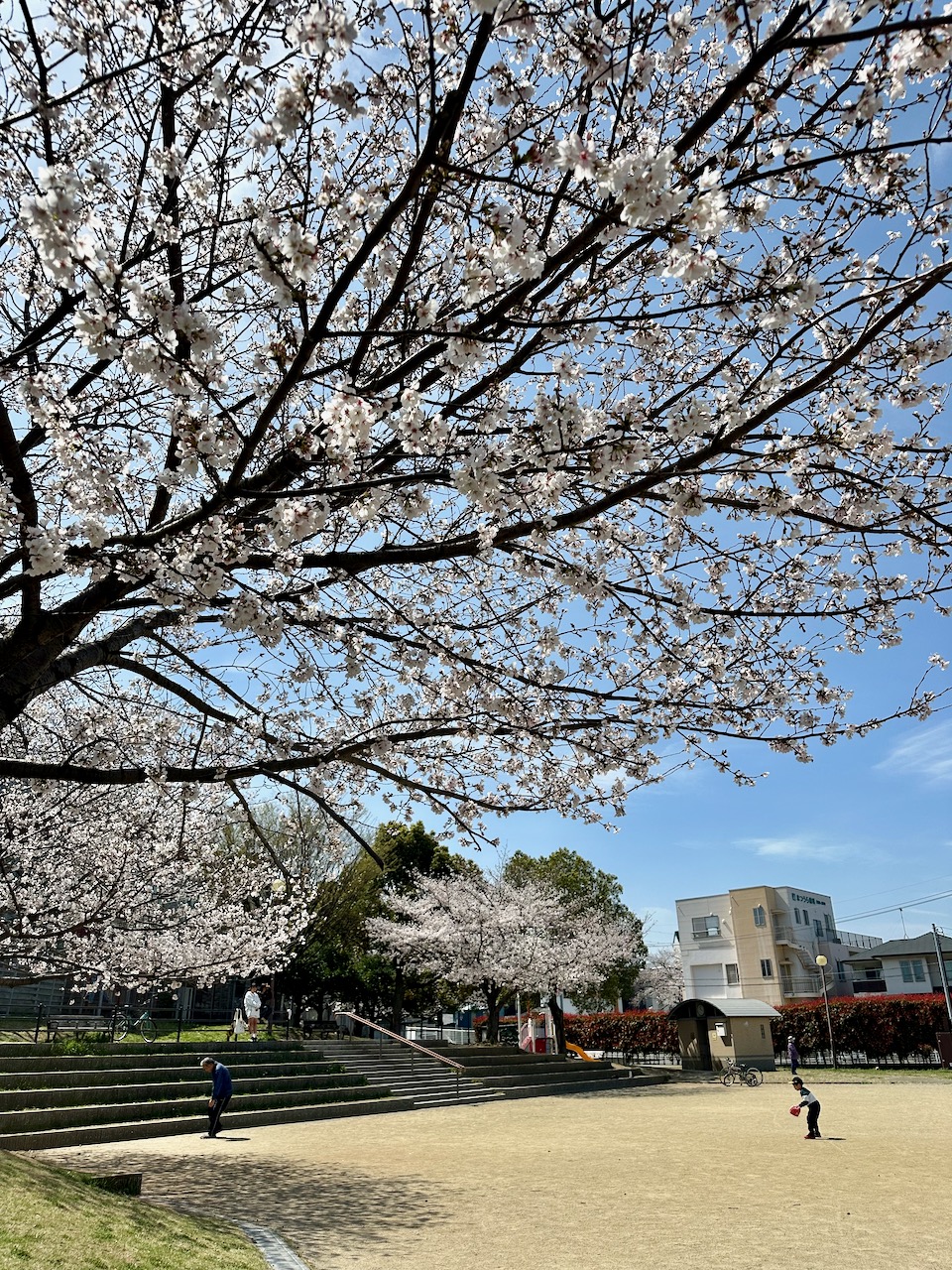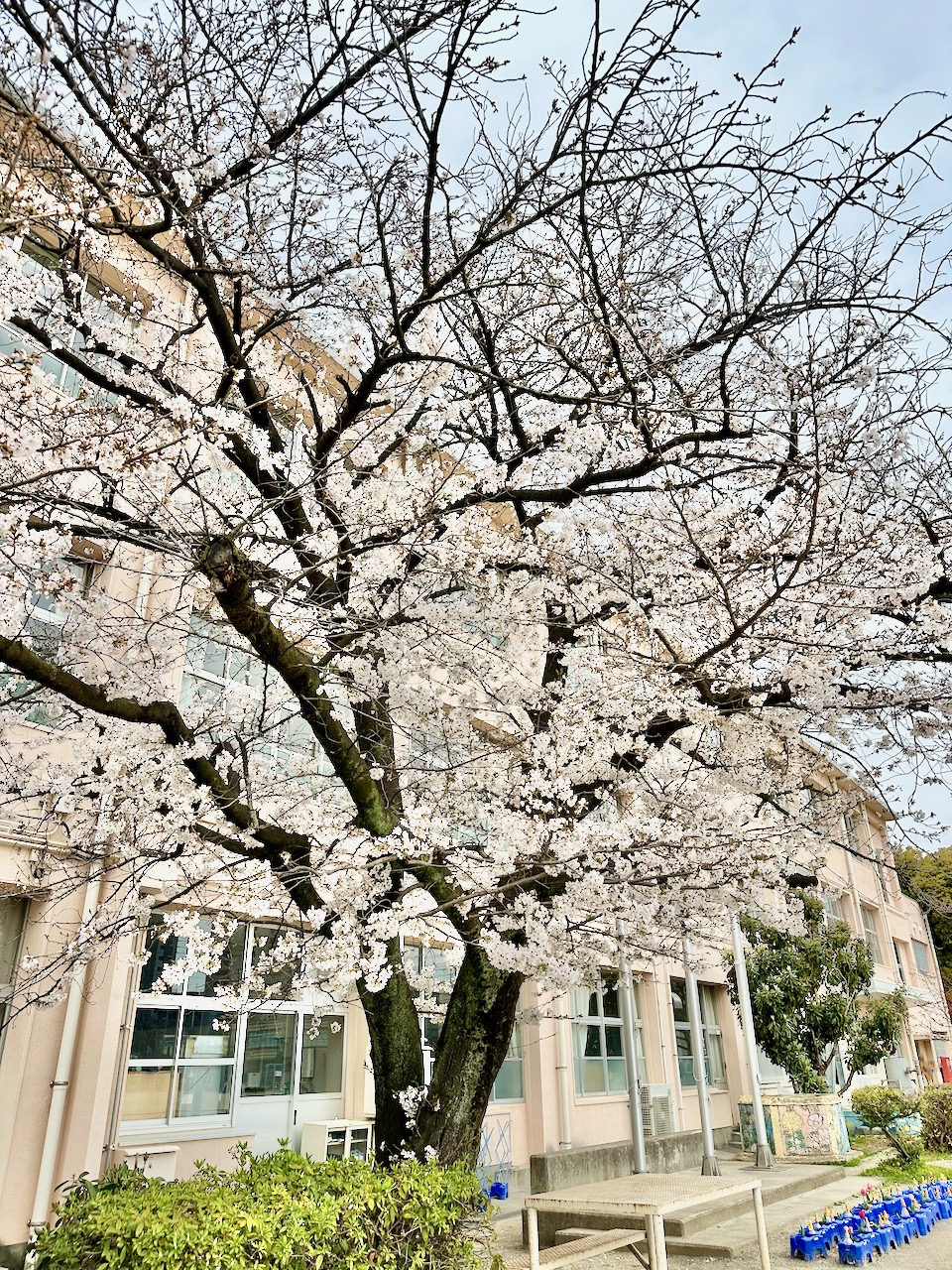 1日最低8000歩。鬱屈しがちなときには、1万歩は歩きたい。そうすれば、身体全体に、力が巡る。ガーデンズ千早を出て少し歩くと、母校の千早小学校。校庭に見事な桜の木が見える。