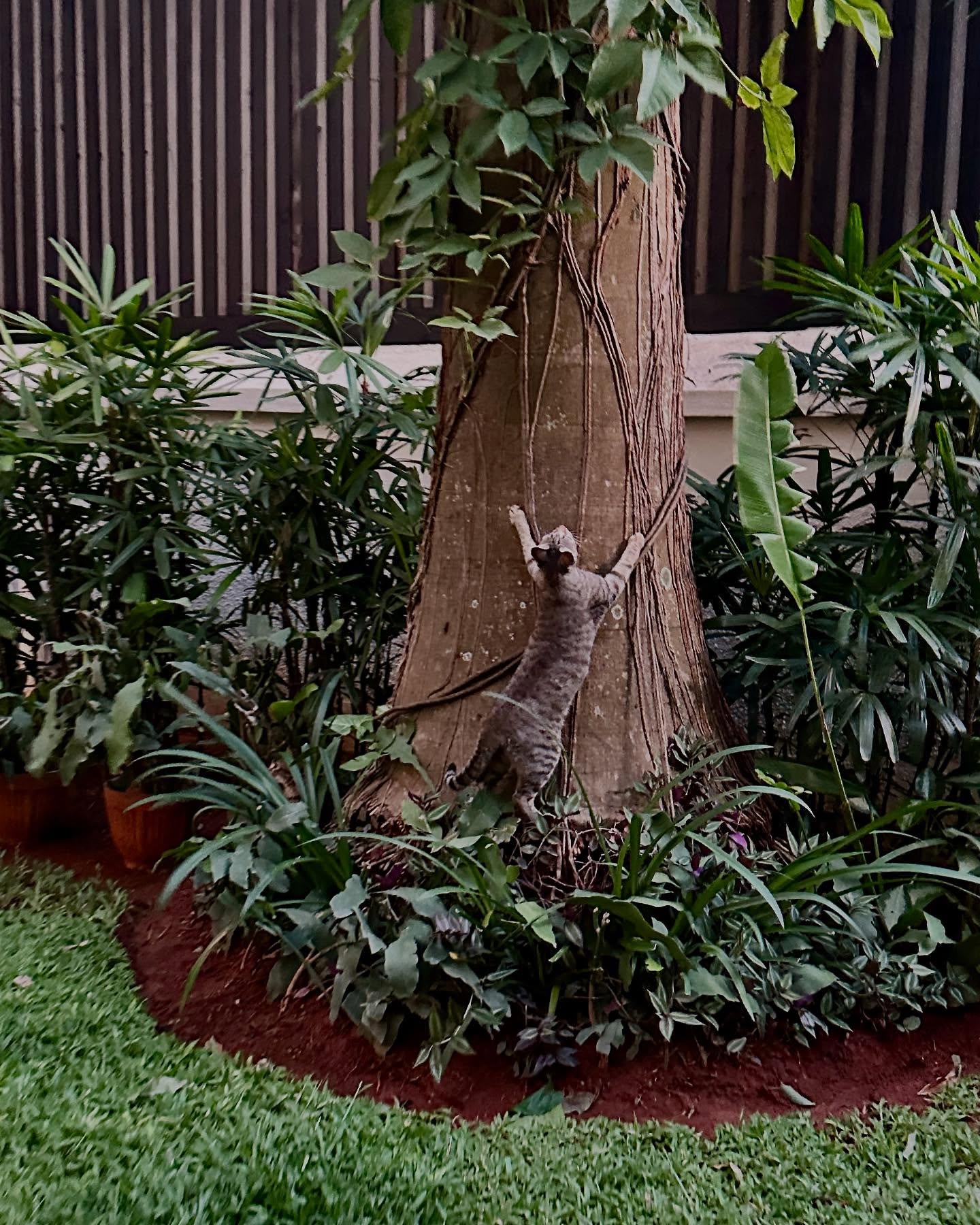 ◎心臓病を抱えているROCKY兄さん、日々の投薬と猫母(わたし)の手料理で元気いっぱい木に登る。もう11歳。長生きしてくれてうれしい。