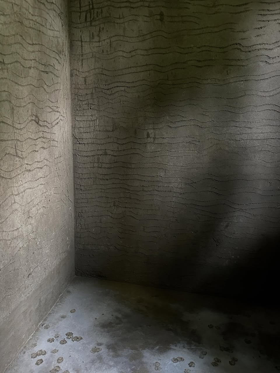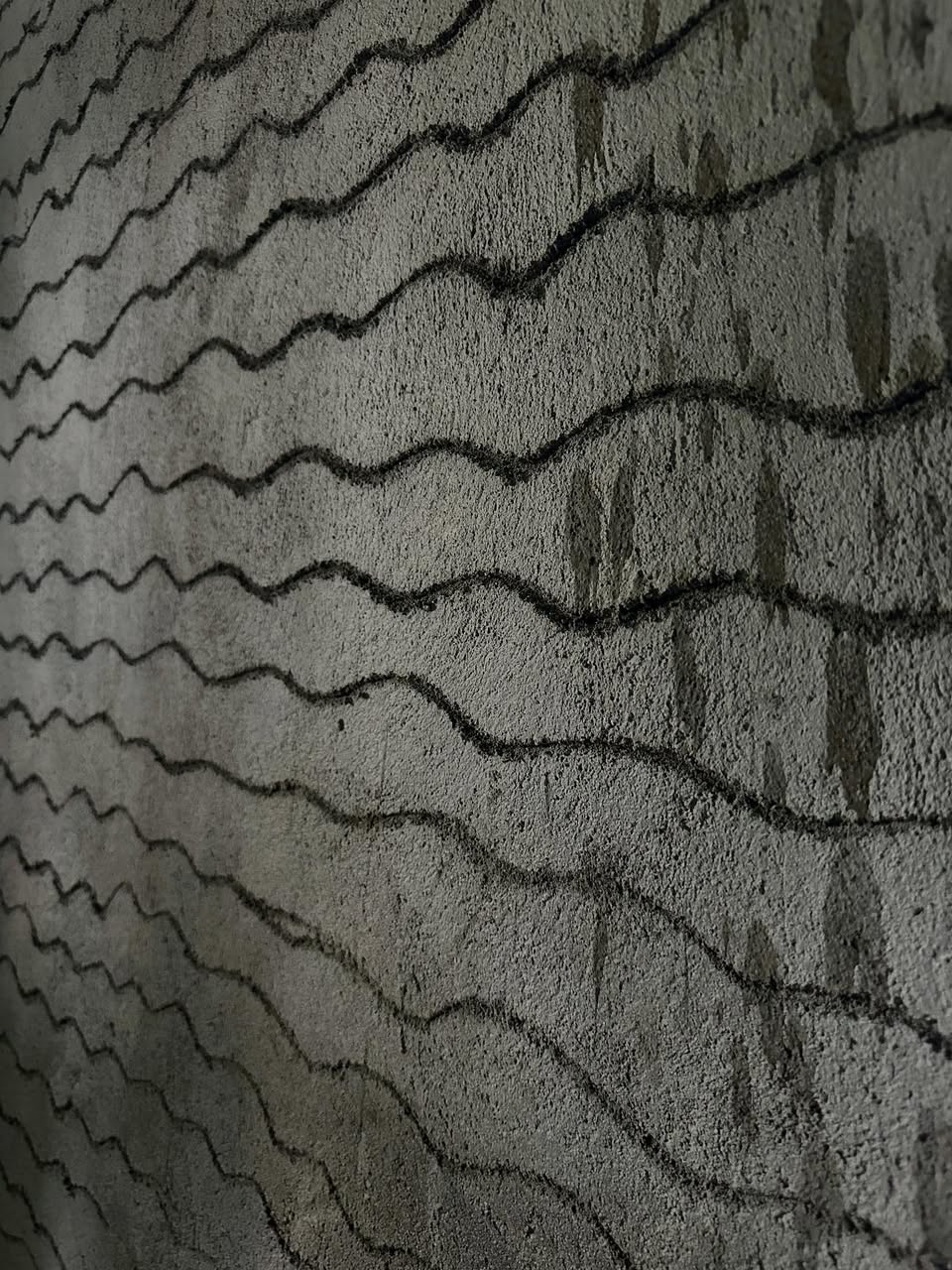 波打つ壁に落ちる朝の光。